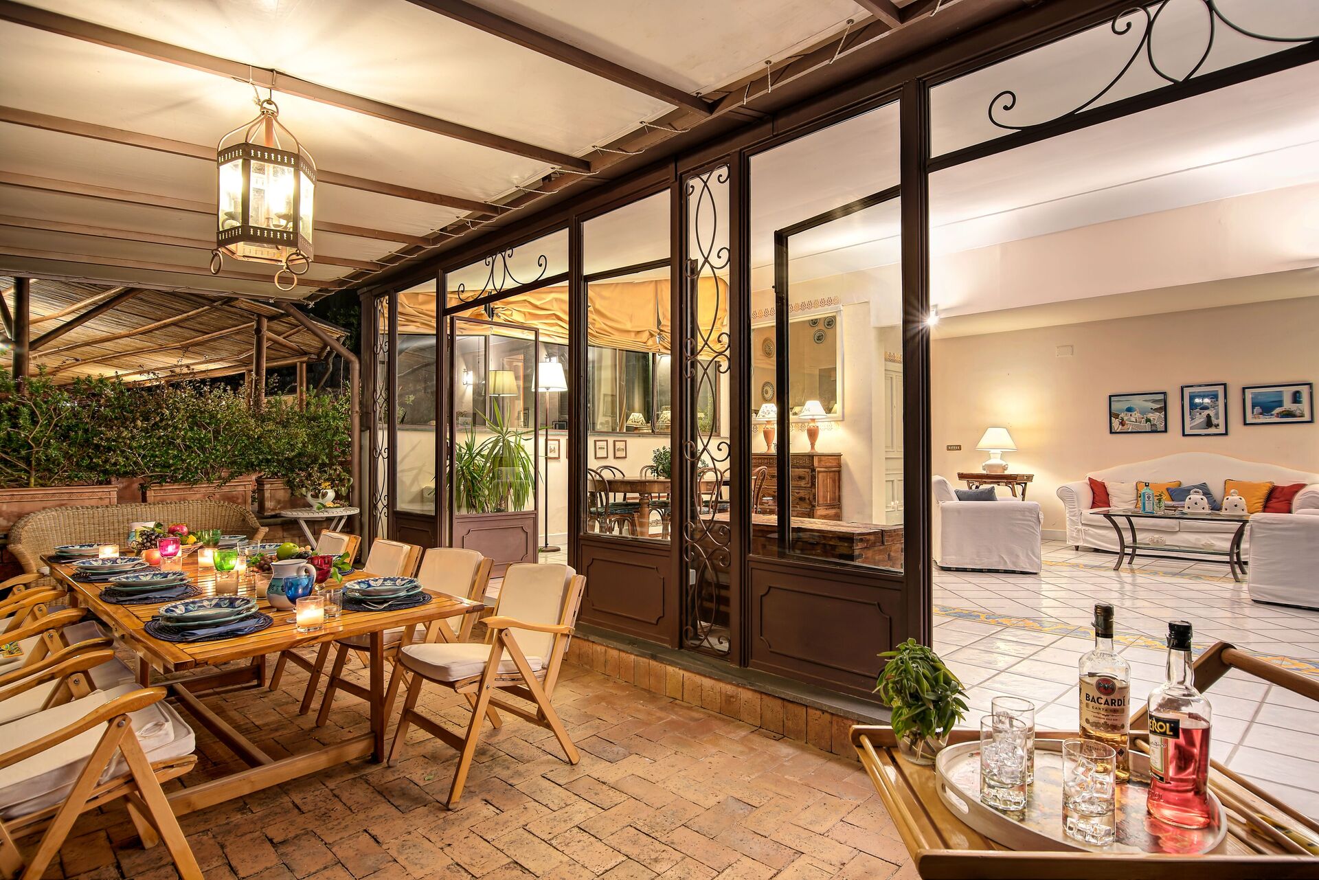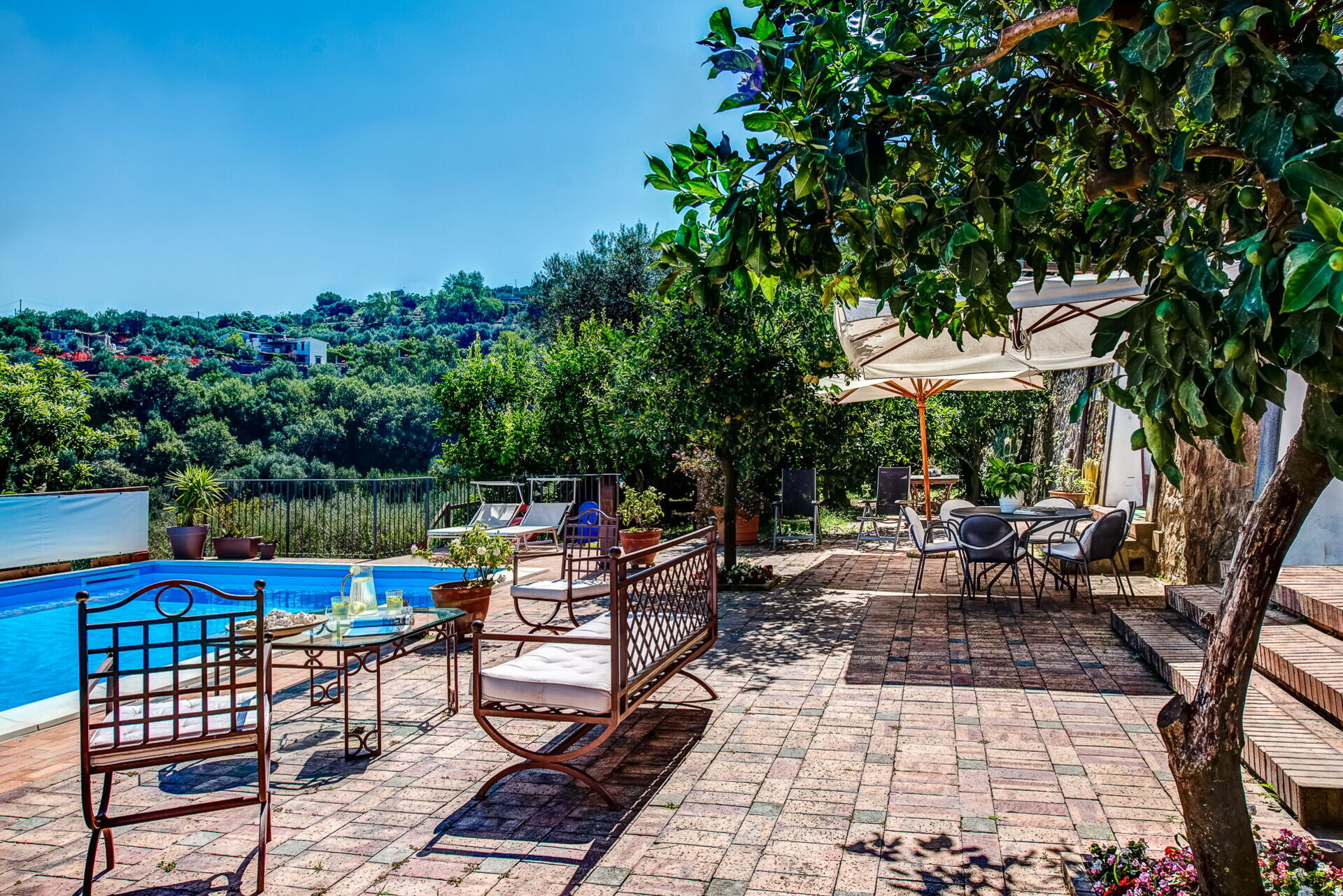 La villa principale vanta quattro camere da letto, un'imponente veranda con zona giorno e pranzo luminosa e ariosa, cucina abitabile separata, salotto formale e terrazza esterna arredata con viste spettacolari sul Golfo di Napoli e sul Vesuvio.