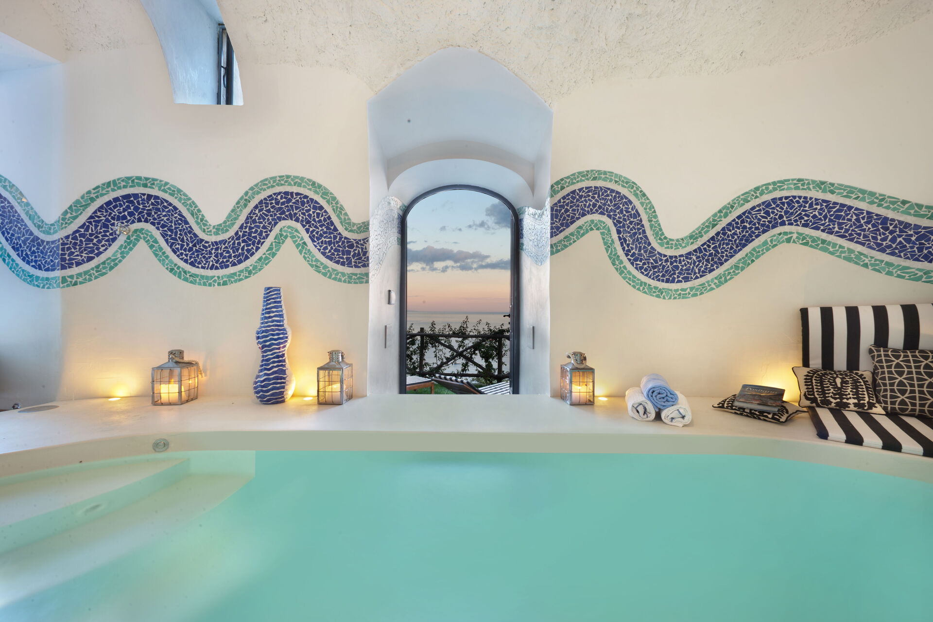 Riservata agli ospiti troverete una spiaggia privata, un vero privilegio che vi permetterà di rilassarvi totalmente e la piscina privata che offre una vista unica sulla baia di Positano, la spiaggia è raggiungibile tramite 180 scalini.