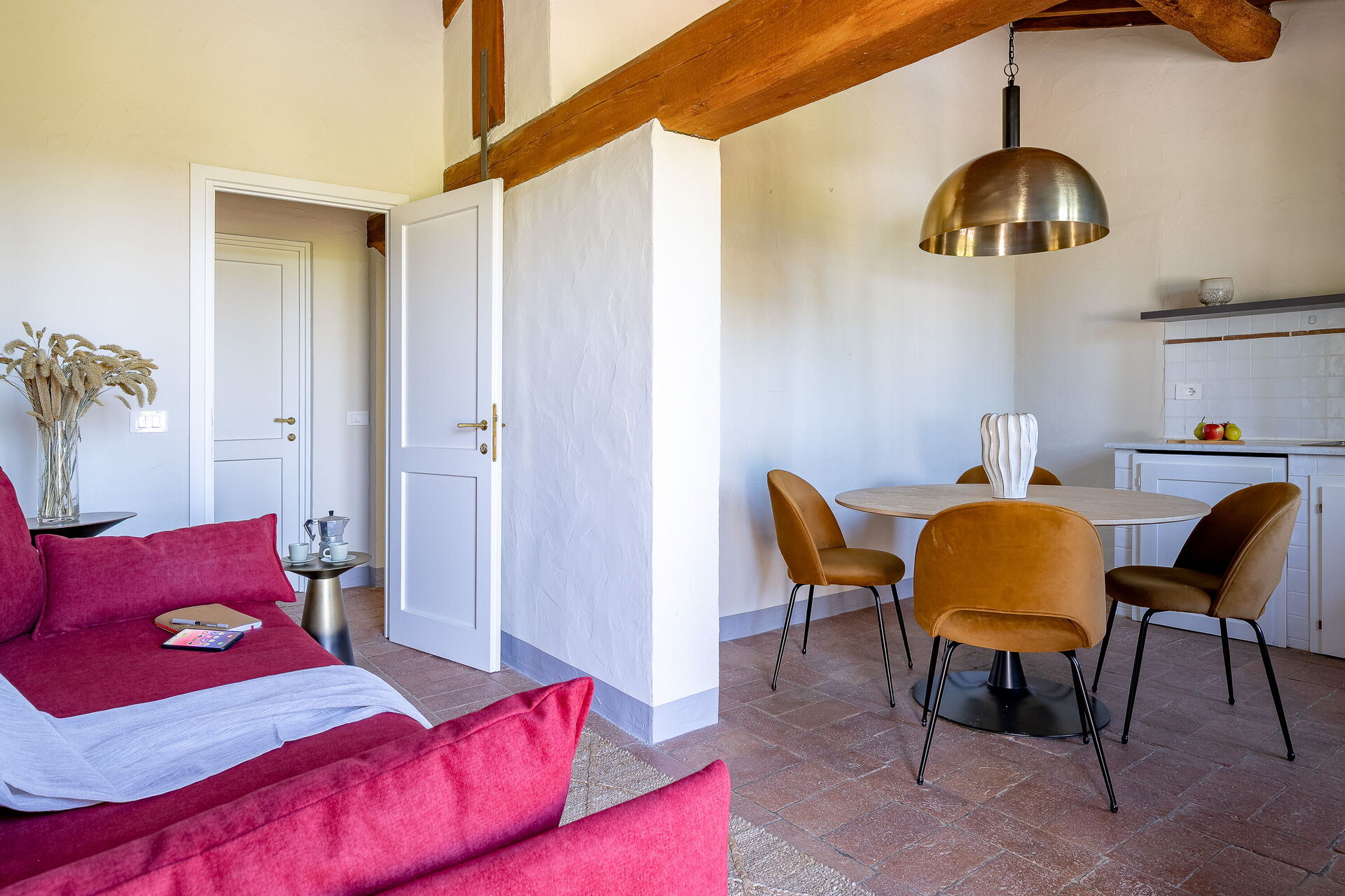 L’alloggio dispone di soggiorno con divano, Smart TV e angolo cottura attrezzato, perfetto per rilassarsi dopo una giornata tra le colline toscane. La zona notte comprende una camera matrimoniale con Smart TV e un bagno moderno con doccia. Annesso rispetto all'edificio principale.
