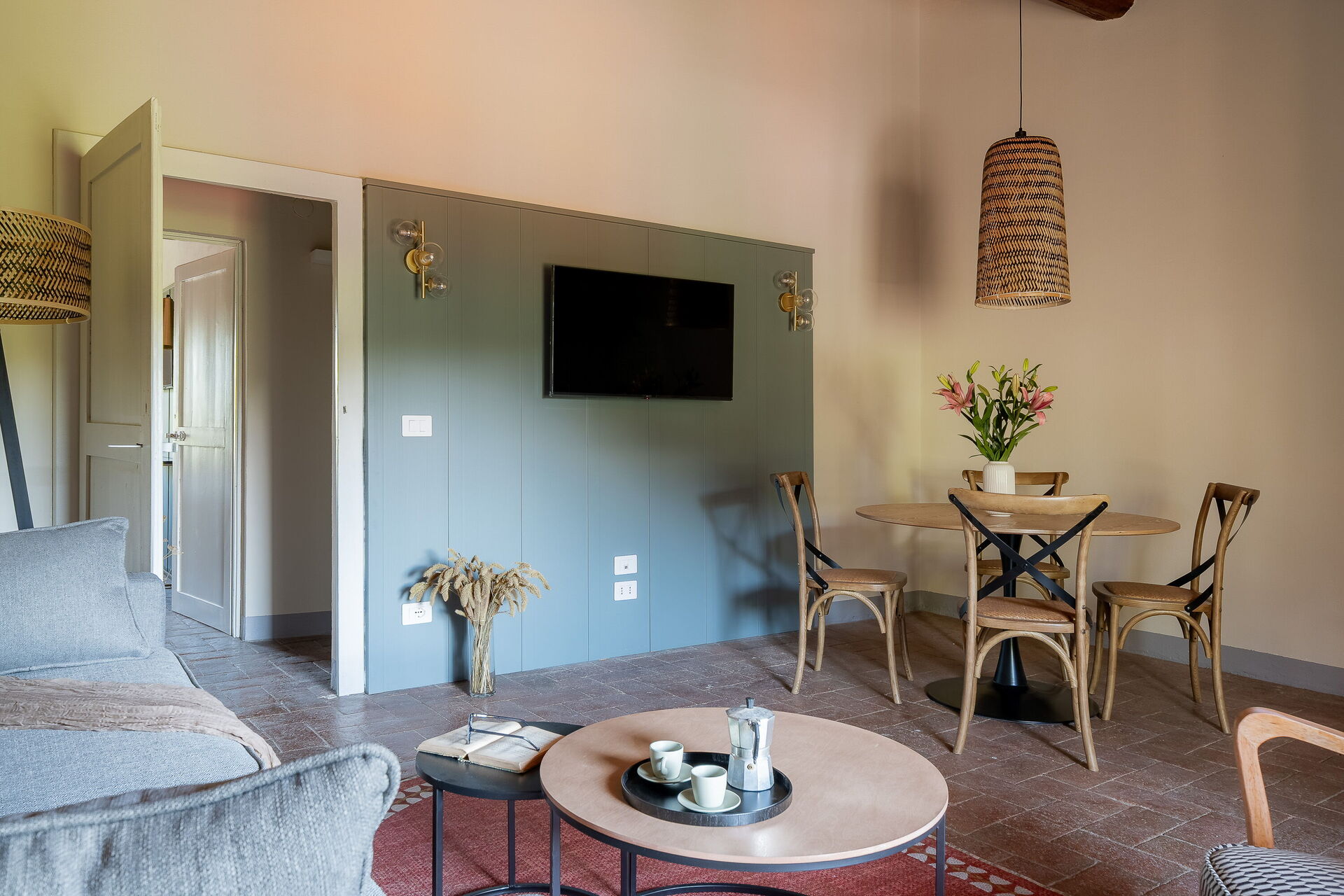 Accogliente appartamento situato al primo piano, ideale per coppie o piccole famiglie in cerca di comfort e funzionalità. L’ampio soggiorno è dotato di angolo cottura con cucina a induzione. L’ambiente include anche un divano, una TV a schermo piatto, e un tavolo da pranzo, perfetto per gustare i pasti in compagnia. La camera matrimoniale è spaziosa e luminosa, dotata di televisione e bagno privato con doccia.