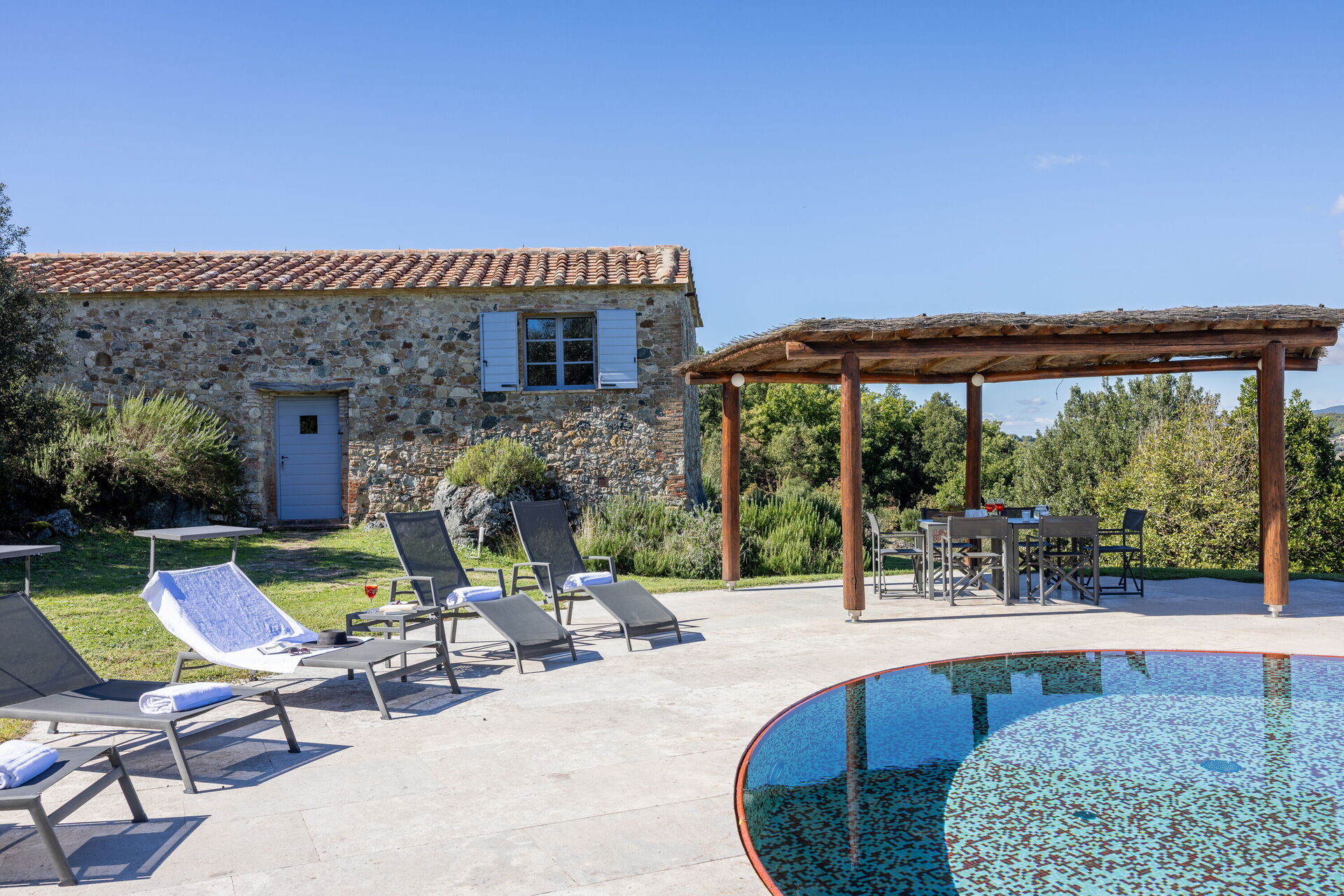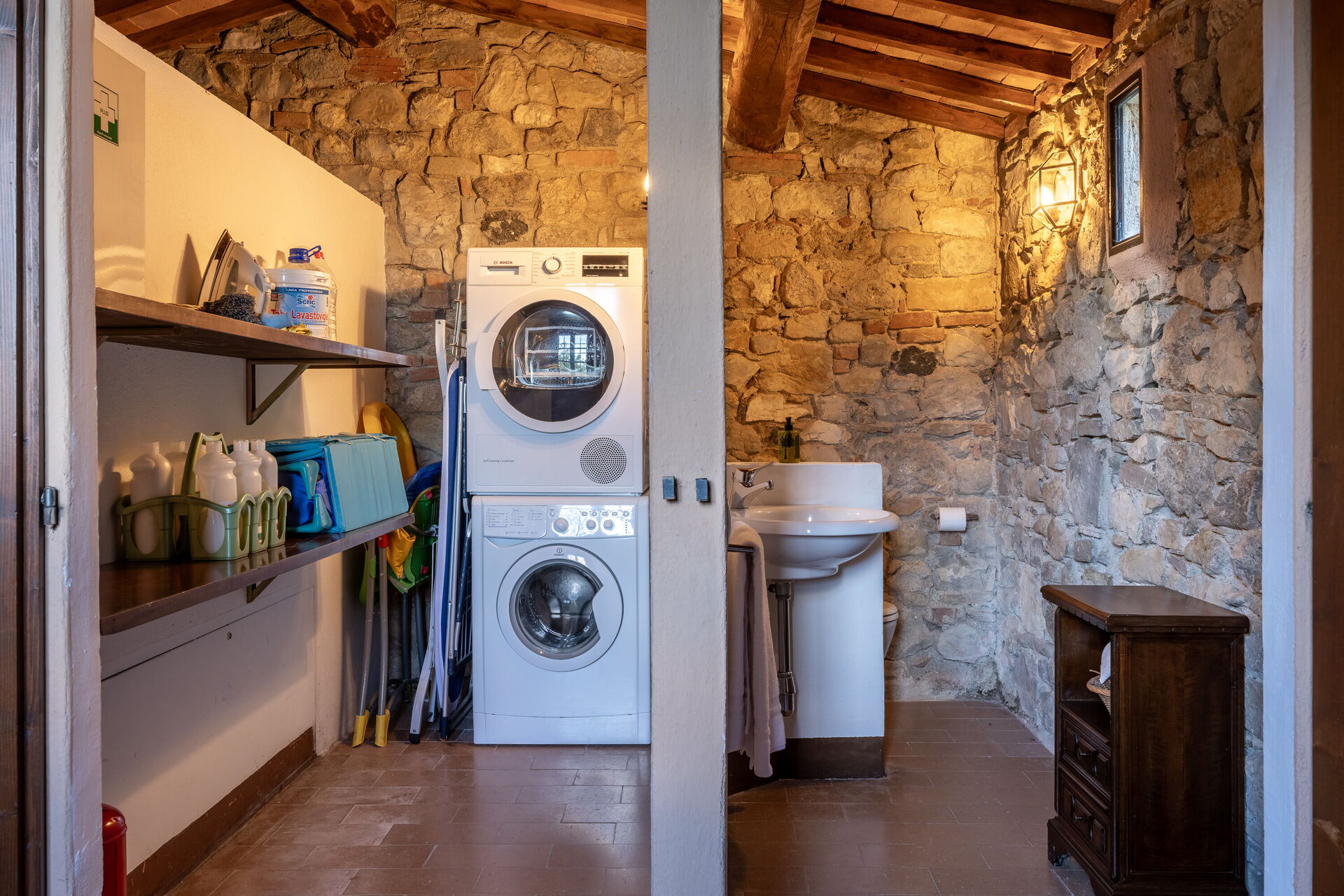 Immersa nel suggestivo paesaggio collinare della Toscana, questa splendida villa con piscina privata offre un’oasi di tranquillità e comfort. Gli spazi esterni, curati e arredati con gusto, includono lettini prendisole, tavolo e sedie per piacevoli pranzi o cene all’aperto, un barbecue e forno esterno funzionante, ampi giardini punteggiati da ulivi secolari, ideali per rilassarsi immersi nella natura.