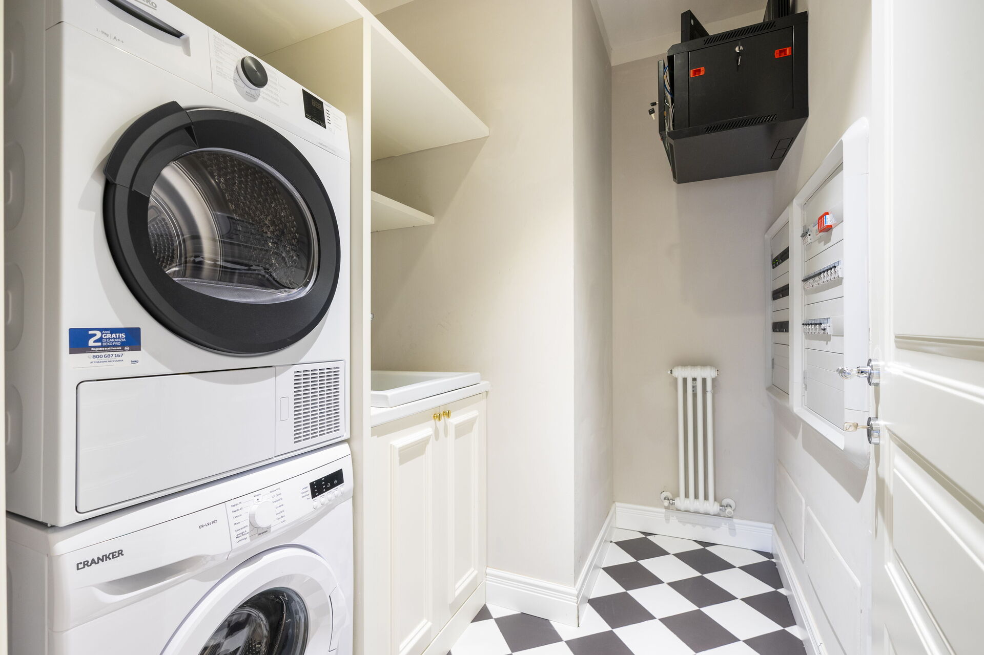 La cucina professionale, dal design impeccabile, è dotata di tutti gli elettrodomestici, tra cui forno, microonde, frigorifero e macchina del caffè, oltre a tutti gli utensili necessari. Per garantire un soggiorno a cinque stelle, sono presenti quattro spaziosi bagni completi con soffione doccia a cascata, vasca da bagno e kit lusso per l'igiene personale.