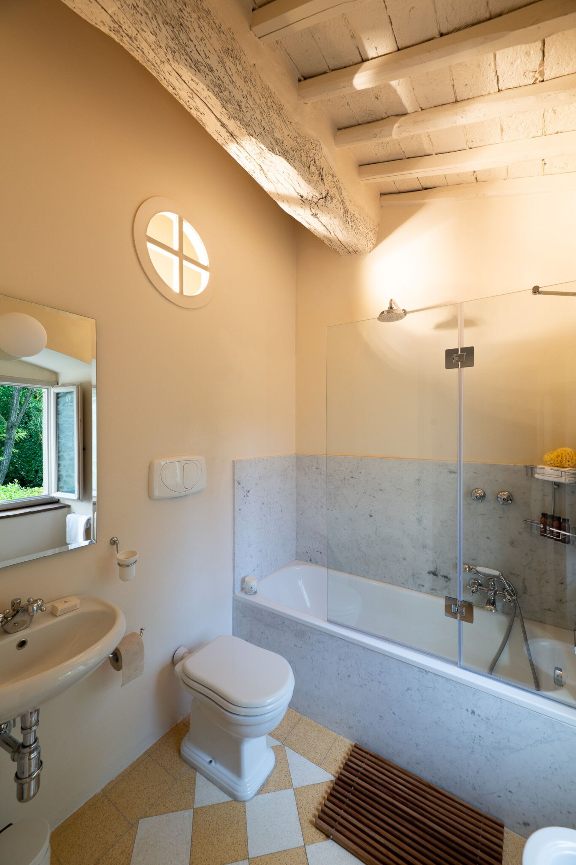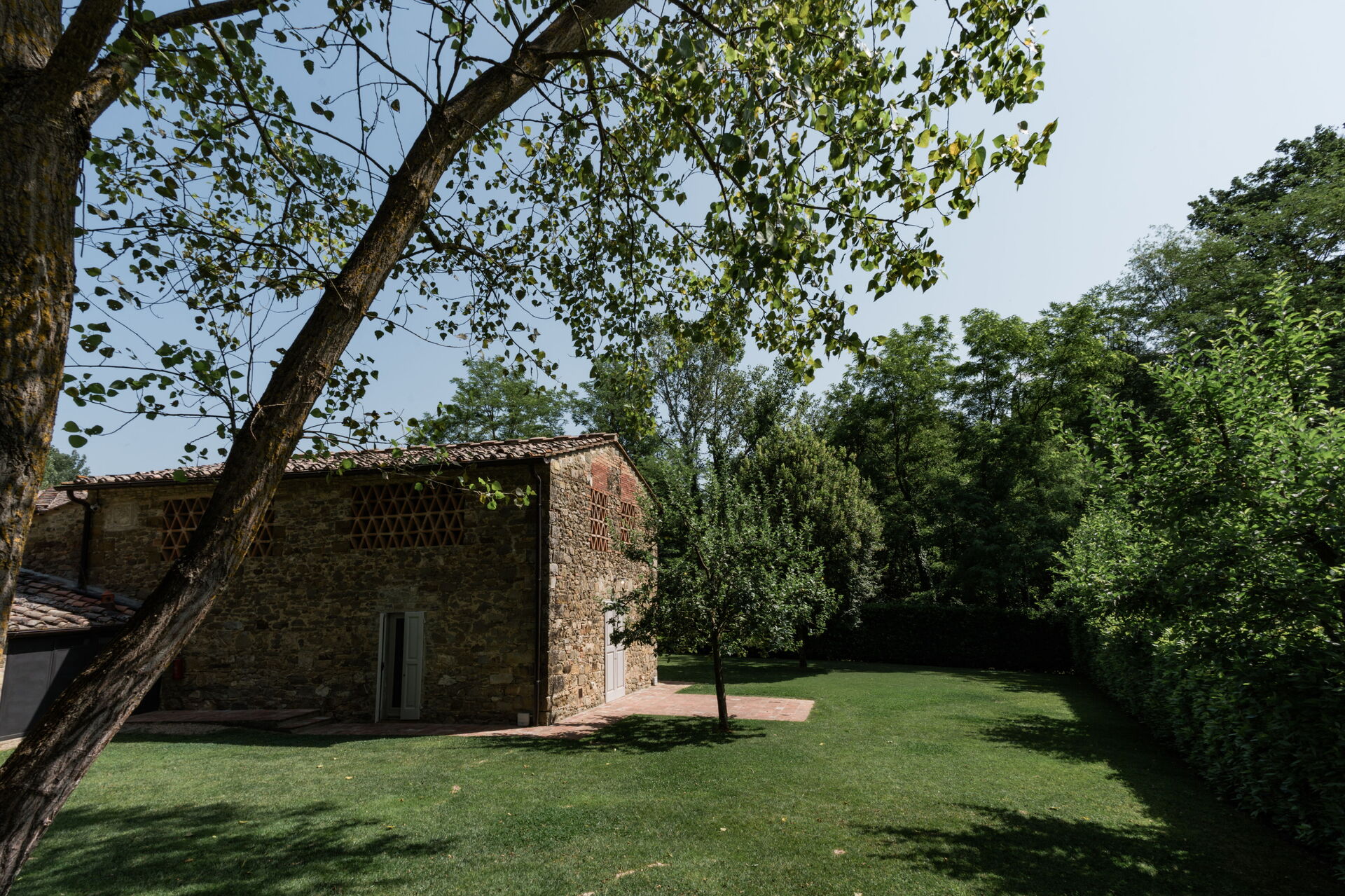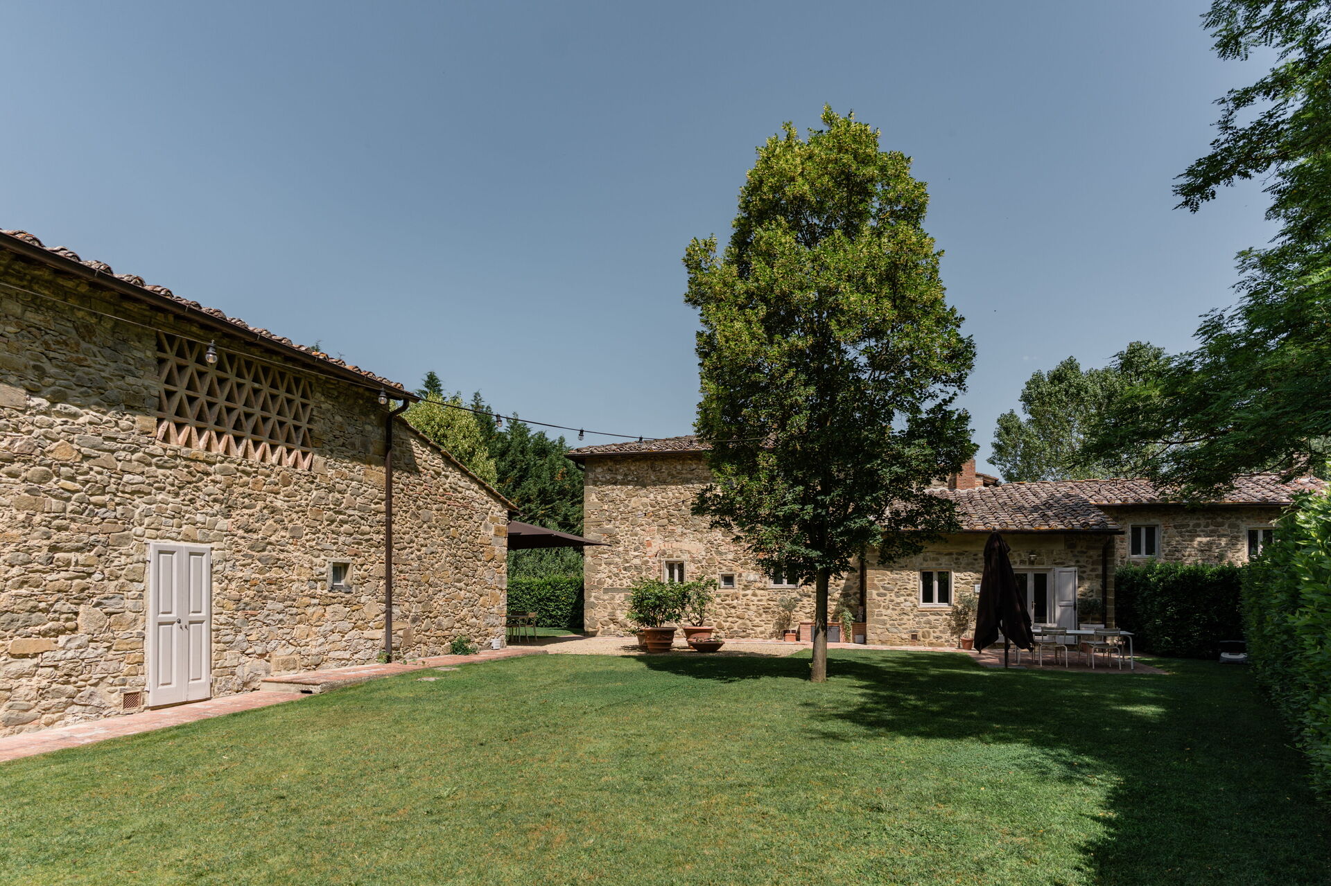 Nel cuore della tenuta, sulle rive del tranquillo fiume Greve, sorge questo splendido casale immerso nella natura. Circondato da un rigoglioso giardino naturale, il piccolo borgo in pietra è ideale per famiglie e gruppi di amici che desiderano la tranquillità della campagna e la massima privacy. A disposizione degli ospiti il giardino con piscina con sdraio a disposizione e con l'area barbecue.