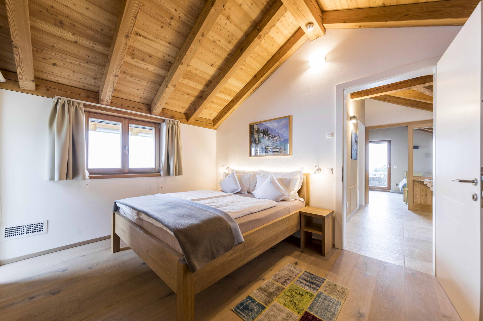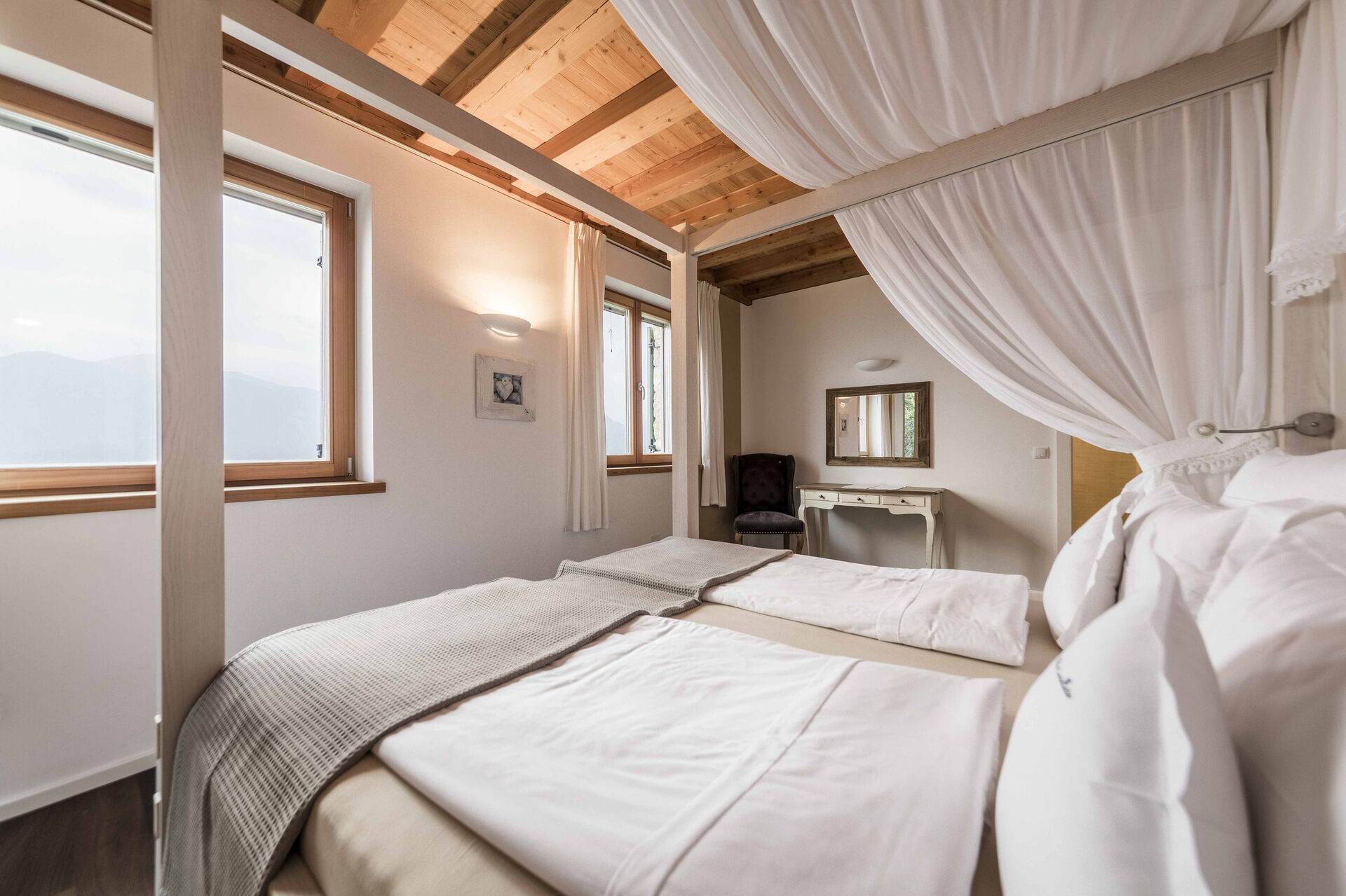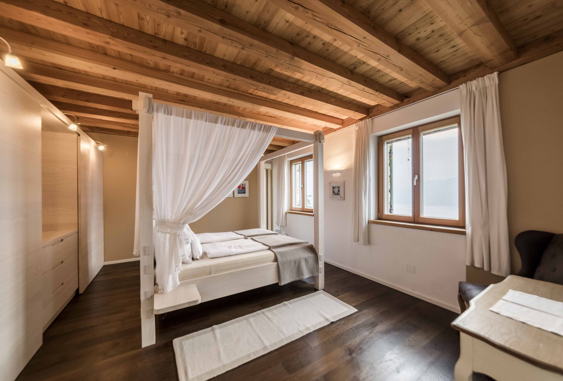 Al primo piano troviamo 2 camere da letto con bagno privato mentre al piano di sopra la zona notte offre altre 2 camere da letto, tutte vista lago e con bagno condiviso. L’ambiente anche qui è davvero unico: travi in legno, come nel resto della casa, per i soffitti ma legno anche per i pavimenti e per gran parte degli arredi. Un mix perfetto che rende tutto l’ambiente realmente eco-friendly.