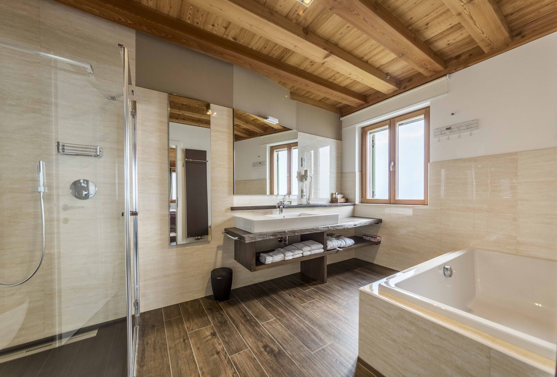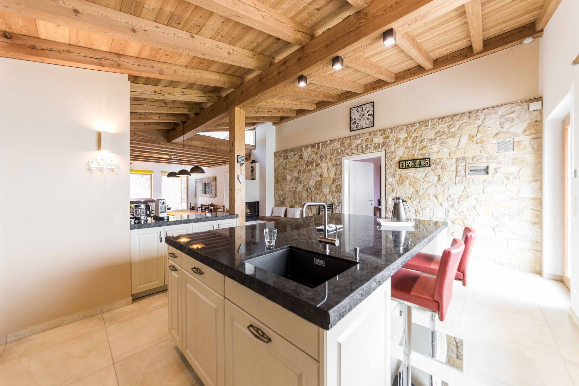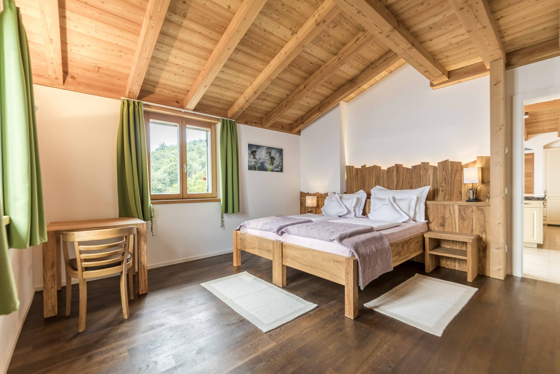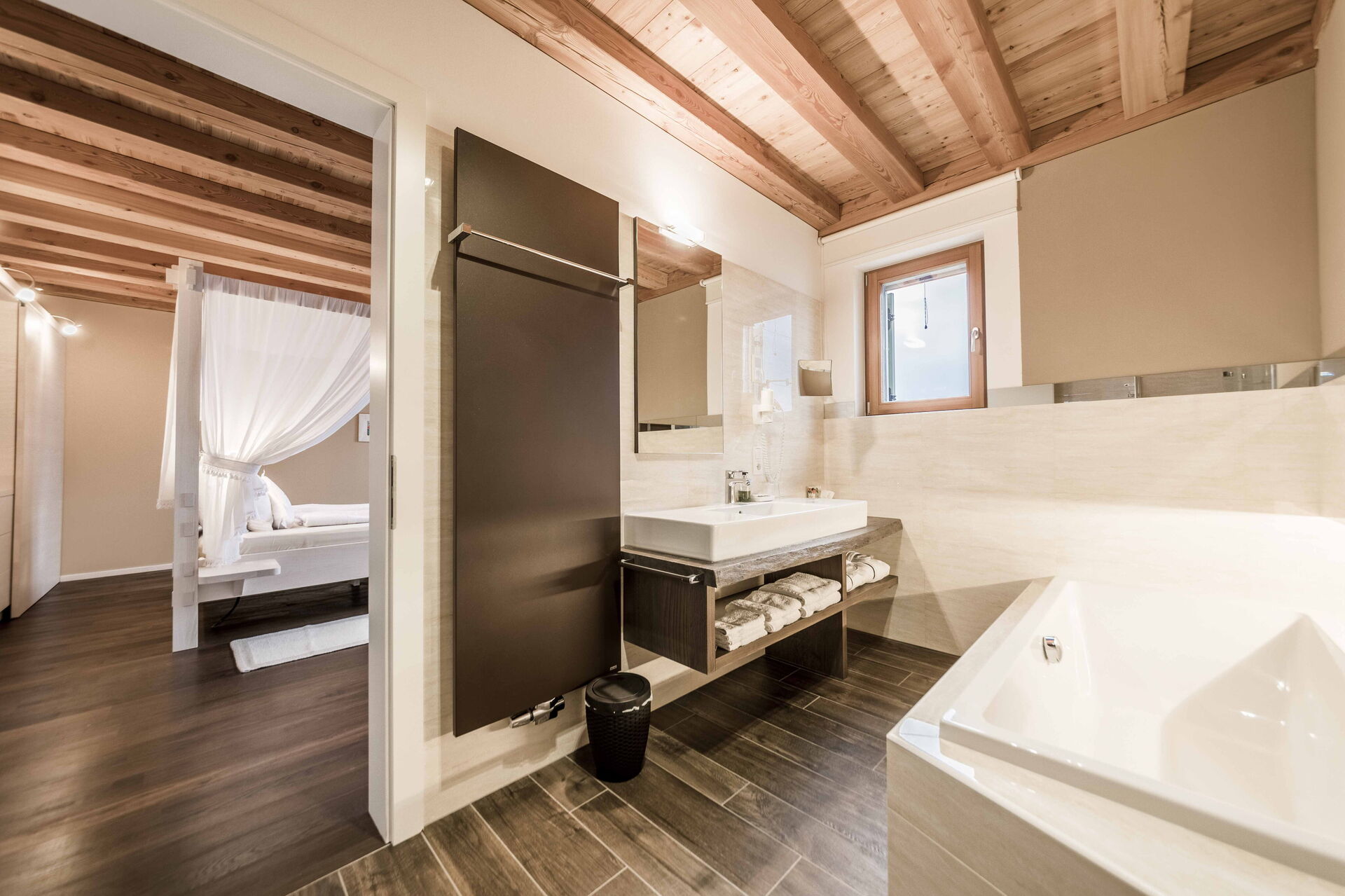 Al primo piano troviamo 2 camere da letto con bagno privato mentre al piano di sopra la zona notte offre altre 2 camere da letto, tutte vista lago e con bagno condiviso. L’ambiente anche qui è davvero unico: travi in legno, come nel resto della casa, per i soffitti ma legno anche per i pavimenti e per gran parte degli arredi. Un mix perfetto che rende tutto l’ambiente realmente eco-friendly.