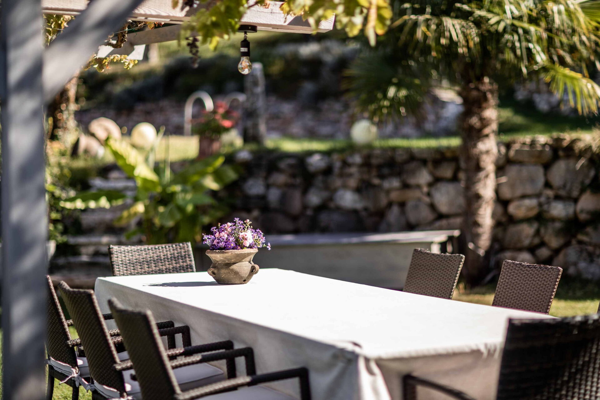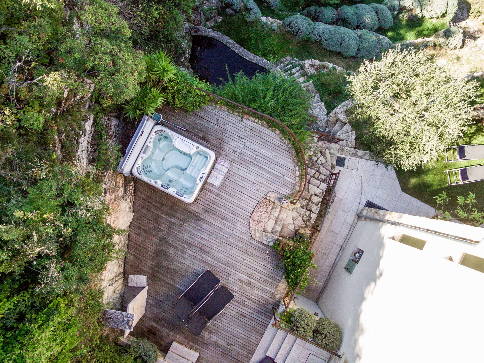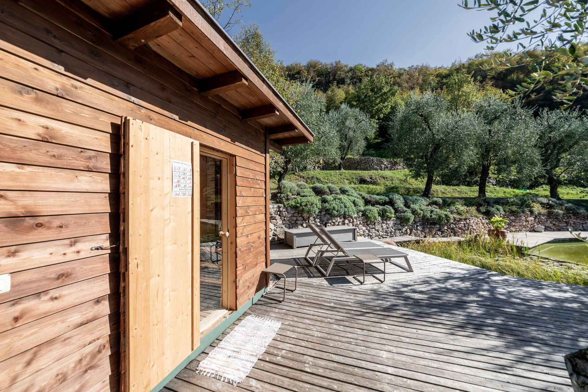 L’ampia zona solarium del giardino – con sdraio, ombrelloni e dondoli -, è servita da un piccolo laghetto balneabile, dove potrete nuotare tra ninfee e piante acquatiche o starvene all’ombra di un banano o di altri alberi tropicali, e da una meravigliosa terrazza con vasca idromassaggio riscaldata, per immergervi e godervi un po’ di relax anche nelle giornate e nelle serate più fresche. In un’altra terrazza, invece, un grande tavolo in legno con sedie vi permetterà di pranzare e cenare in uno scenario unico proprio sopra le acque del lago di Garda facendovi godere dell’emozione di stare realmente sospesi tra cielo e terra. Un angolo di Paradiso dove troverete anche un’area barbecue da vivere soprattutto al calar della sera per un aperitivo o per una grigliata in comitiva.