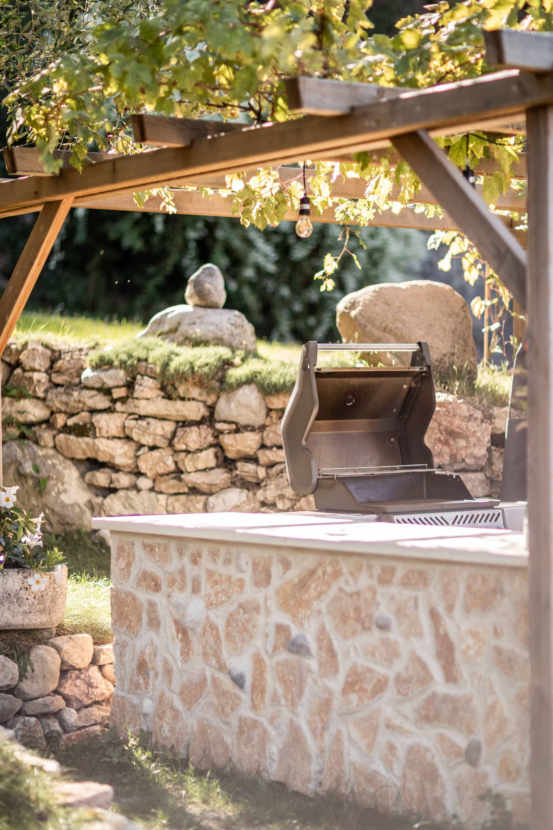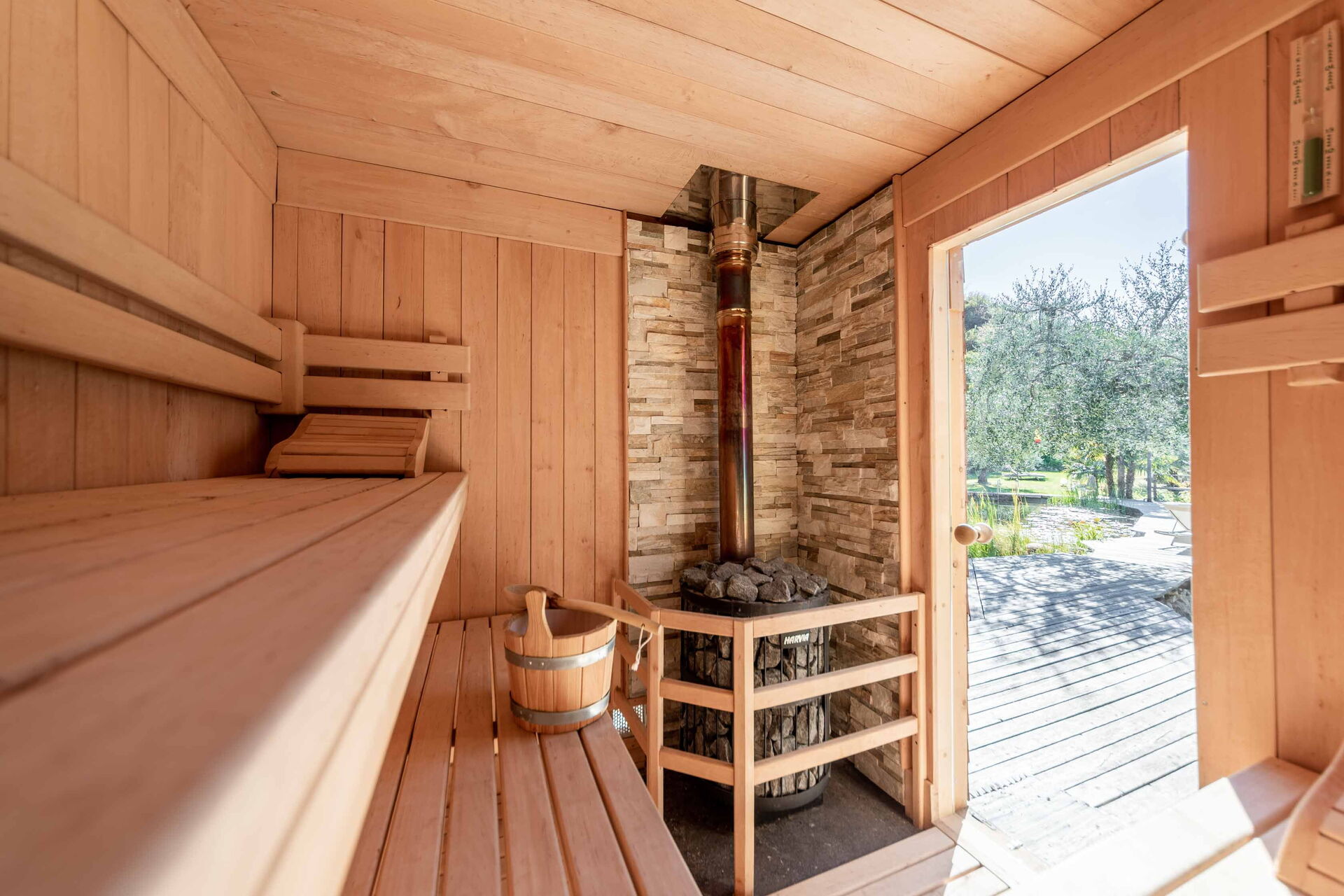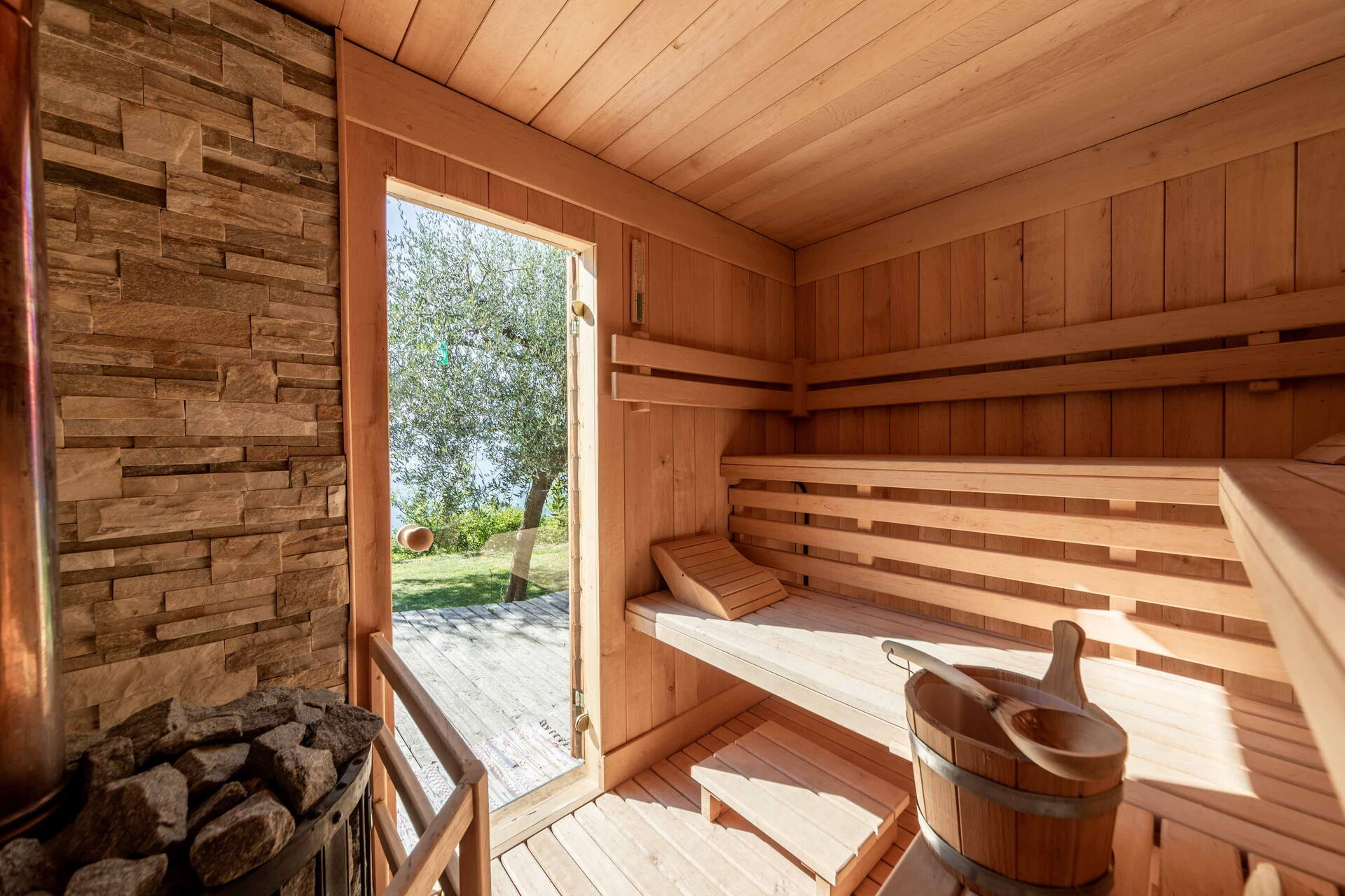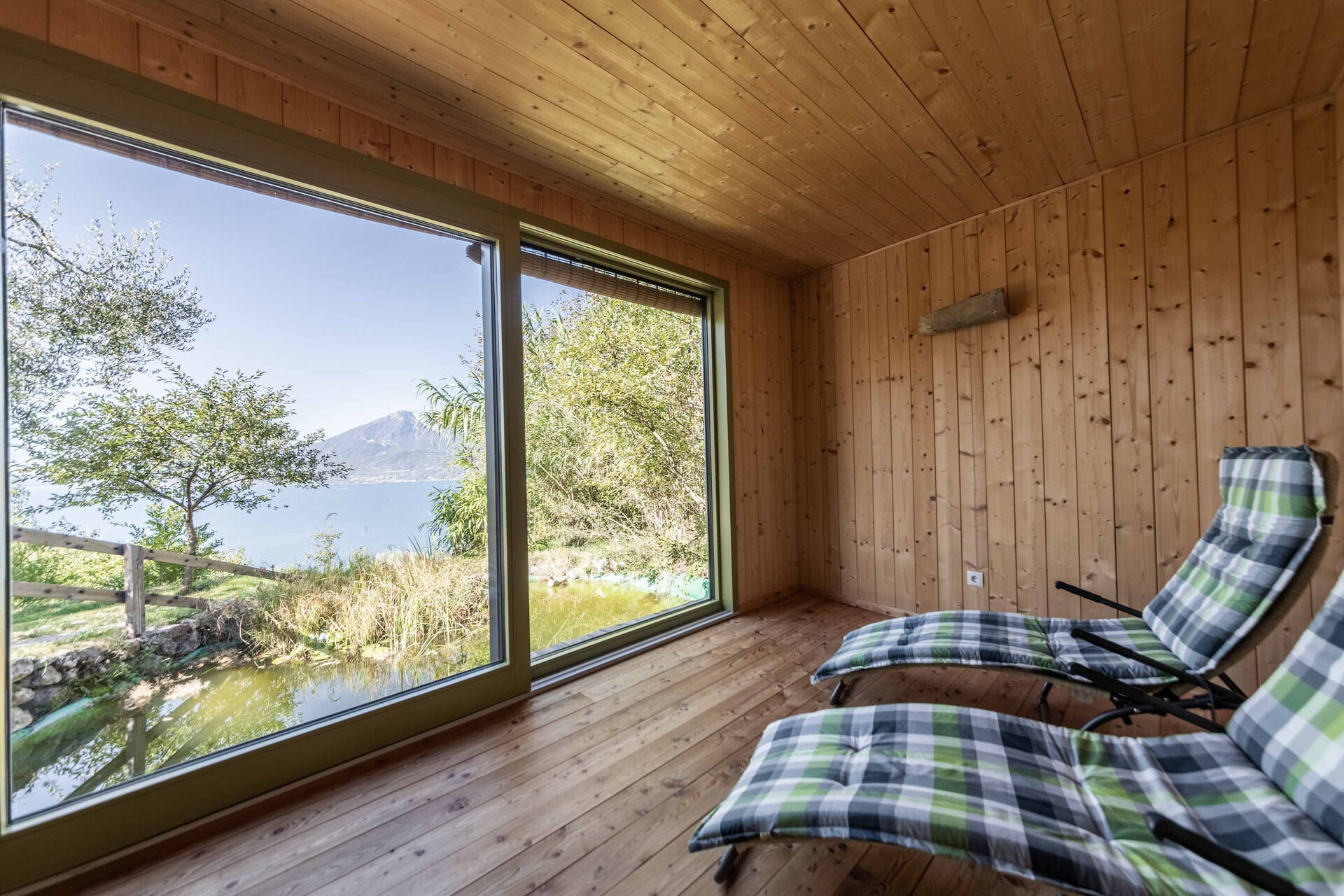 L’ampia zona solarium del giardino – con sdraio, ombrelloni e dondoli -, è servita da un piccolo laghetto balneabile, dove potrete nuotare tra ninfee e piante acquatiche o starvene all’ombra di un banano o di altri alberi tropicali, e da una meravigliosa terrazza con vasca idromassaggio riscaldata, per immergervi e godervi un po’ di relax anche nelle giornate e nelle serate più fresche. In un’altra terrazza, invece, un grande tavolo in legno con sedie vi permetterà di pranzare e cenare in uno scenario unico proprio sopra le acque del lago di Garda facendovi godere dell’emozione di stare realmente sospesi tra cielo e terra. Un angolo di Paradiso dove troverete anche un’area barbecue da vivere soprattutto al calar della sera per un aperitivo o per una grigliata in comitiva.