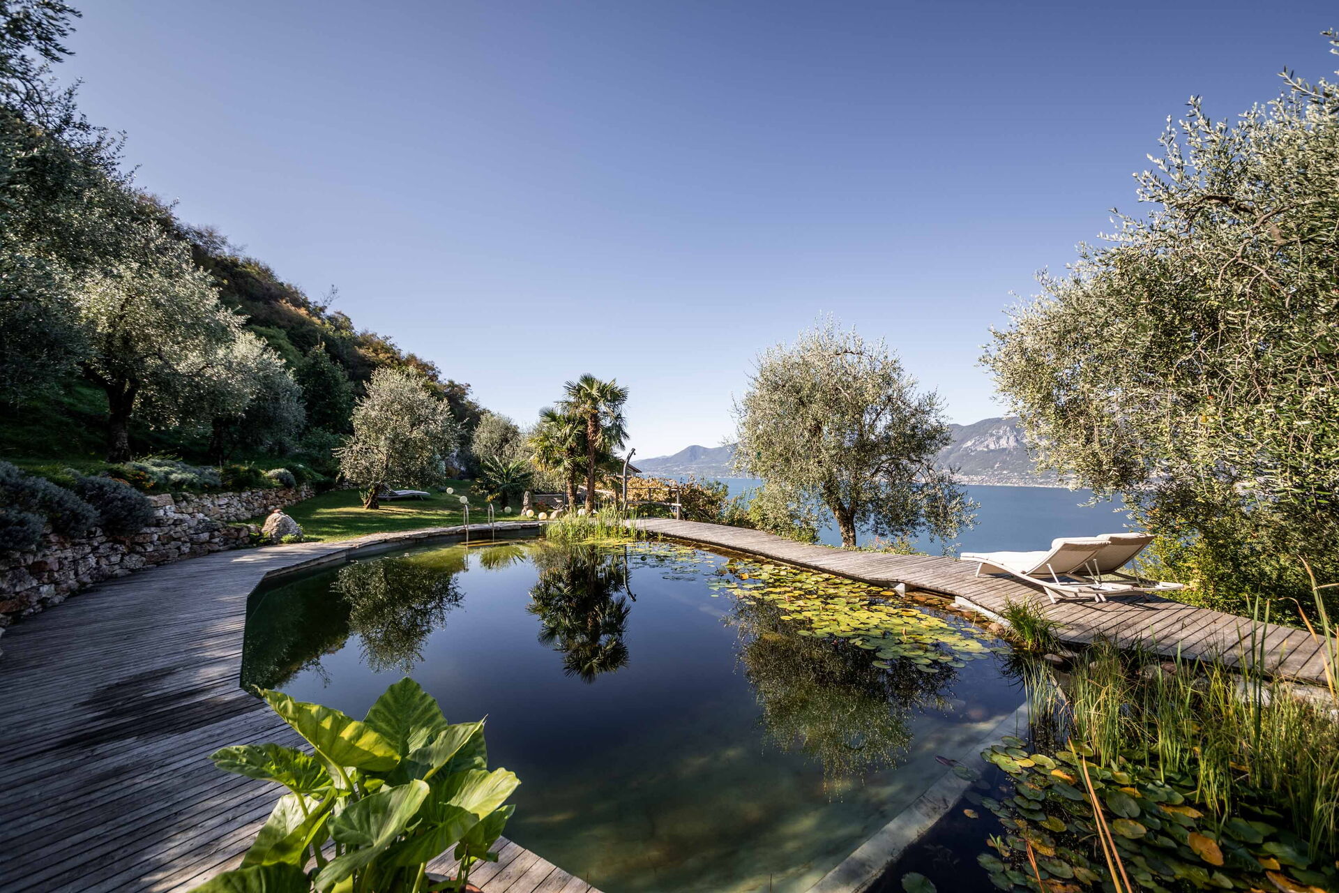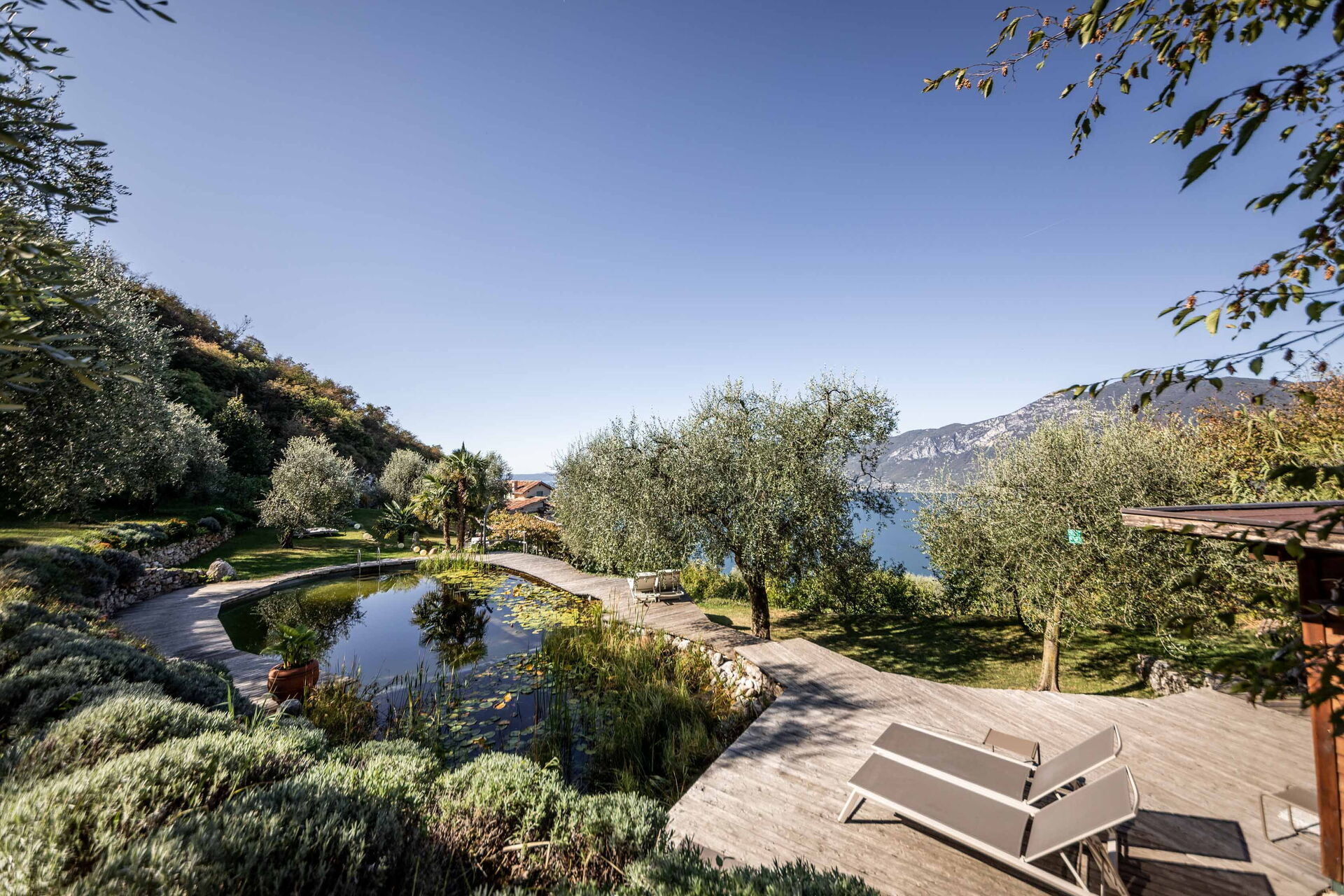 Dimora Delle Ninfee Del Garda situata a Castelletto con una vista straordinaria, circondata da ulivi secolari, si trova a 280 metri di altitudine sopra il Lago di Garda. Il manufatto di nuova costruzione, si trova nel cuore di una proprietà di 7,5 ettari, al riparo dalla strada e senza vicinato.
