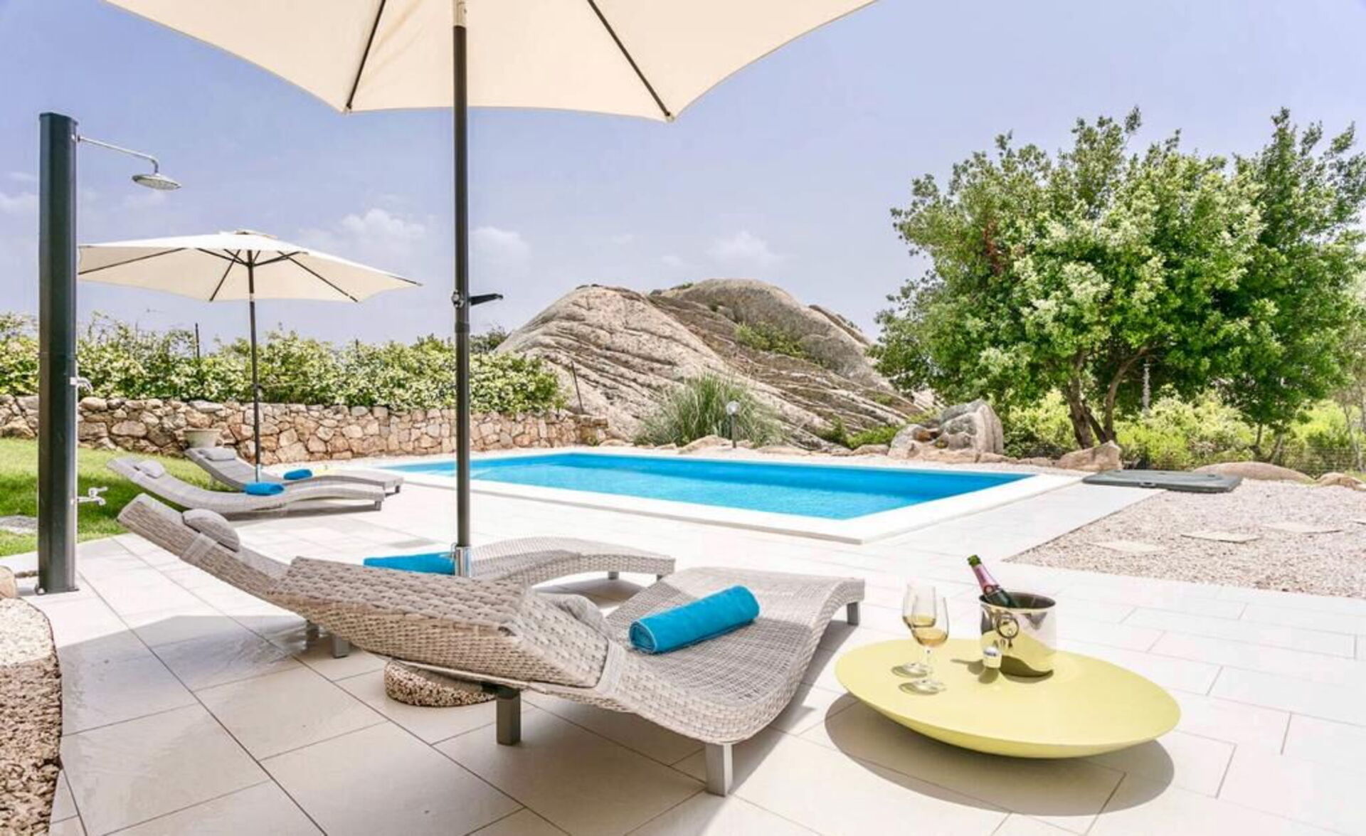 The house overlooks one of the most beautiful seas in Italy, in a context of great charm due to the presence of a lot of green made of Mediterranean scrub, olive trees and myrtle bushes but also monumental granite rocks, paths among which to get lost with pleasure. Outside there is also a tiled solarium, equipped with sun loungers and umbrellas, and a barbecue area.