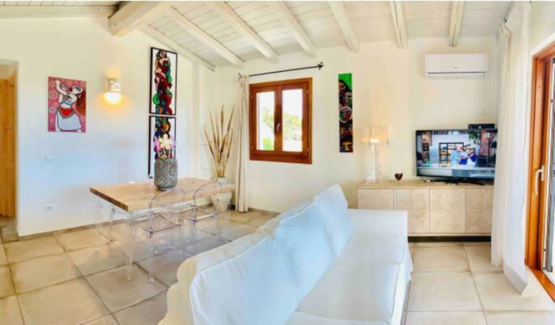 Refined and refined furnishings, also inspired by the island's tradition, the house will allow you to spend pleasant moments of relaxation even on the large veranda, where you can eat comfortably seated or lie down on the sofas for a cocktail or an aperitif. Particularly bright and welcoming are the two living rooms with white sofas and large French windows that give the feeling of being able to let the sun in even inside this residence full of charm and elegance.