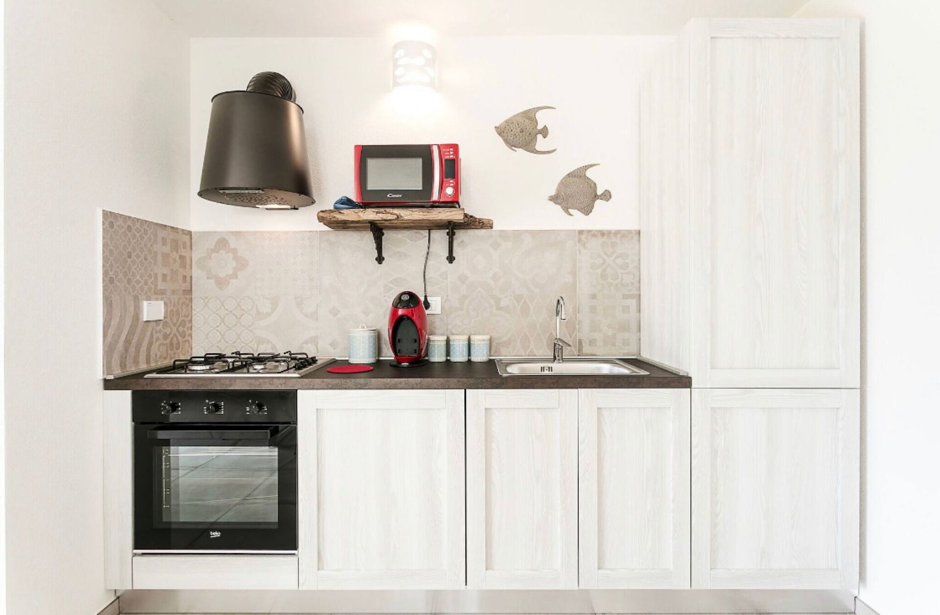 The 4 rooms with openings or views of the outside are also large and welcoming. The kitchens are equipped with everything: 4-burner hob, sink, oven, refrigerator, dishwasher, coffee machine, microwave.