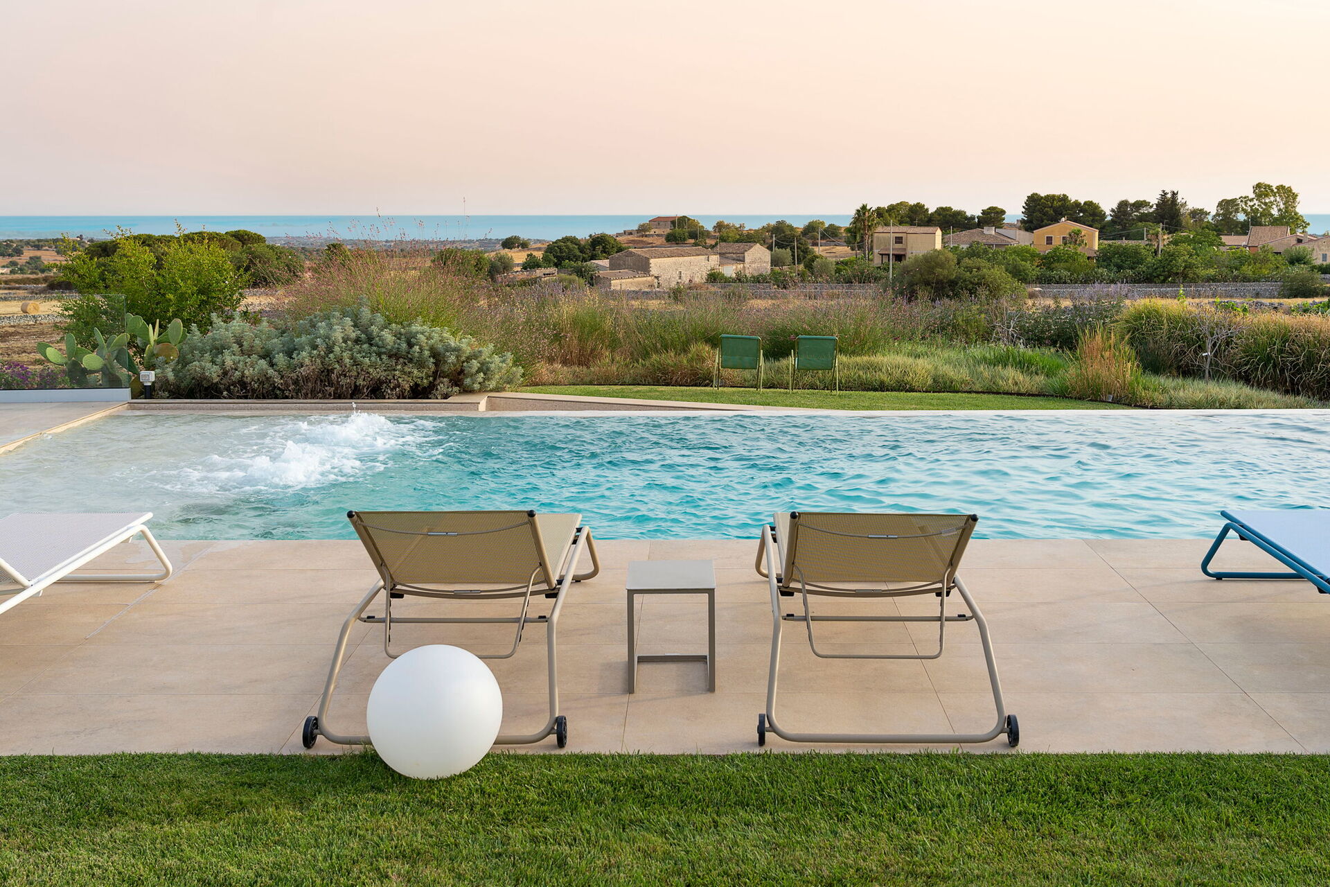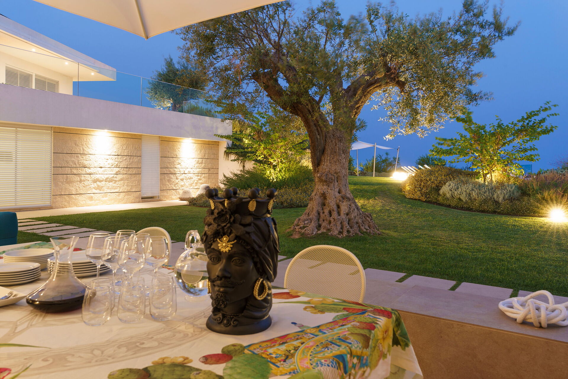 Splendida is a luxury villa with large terraces and a private heated (26°) and salt-purified swimming pool (5x9 m, depth 0.30-1.40 m) with a beautiful view of the sea and surrounded by a well-kept garden, located between Modica and Scicli, two cities renowned for their baroque artistic heritage in the Val di Noto region, a UNESCO site. The villa is in a quiet, sunny and panoramic position, surrounded by a lush garden with lawn, aromatic and ornamental plants. The residence extends over the ground floor. The upper floor of the villa houses an independent accommodation, inhabited by the owners during the medium and low season periods, not using the gareden and pool which are private for the guests only. All rooms are air conditioned. The house offers modern comforts and a wellness area with sauna, Turkish bath, hydromassage tub and emotional shower. Excellent base for exploring the surrounding area, which includes splendid beaches, seaside villages, baroque cities, archaeological sites and nature reserves in south-eastern Sicily.