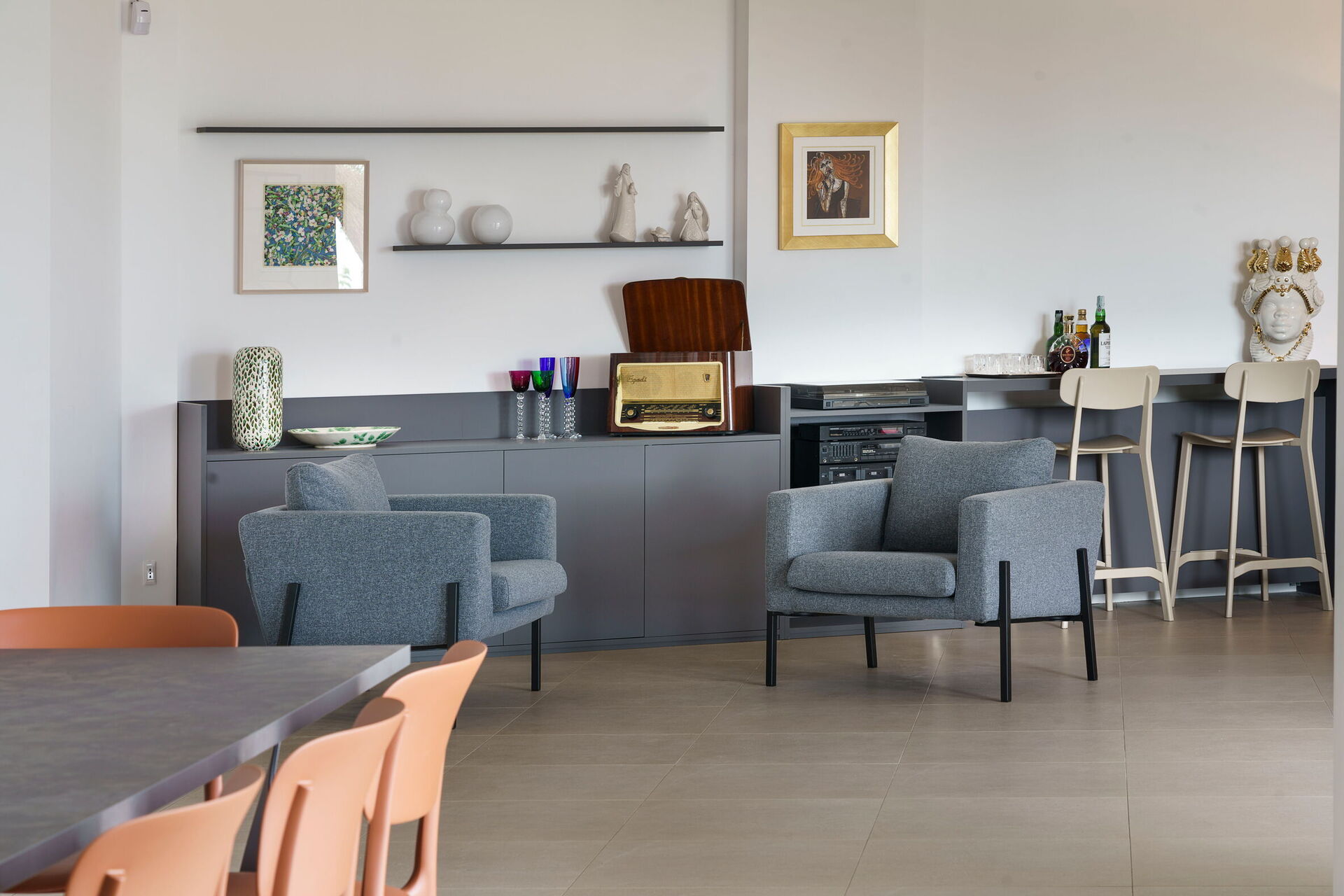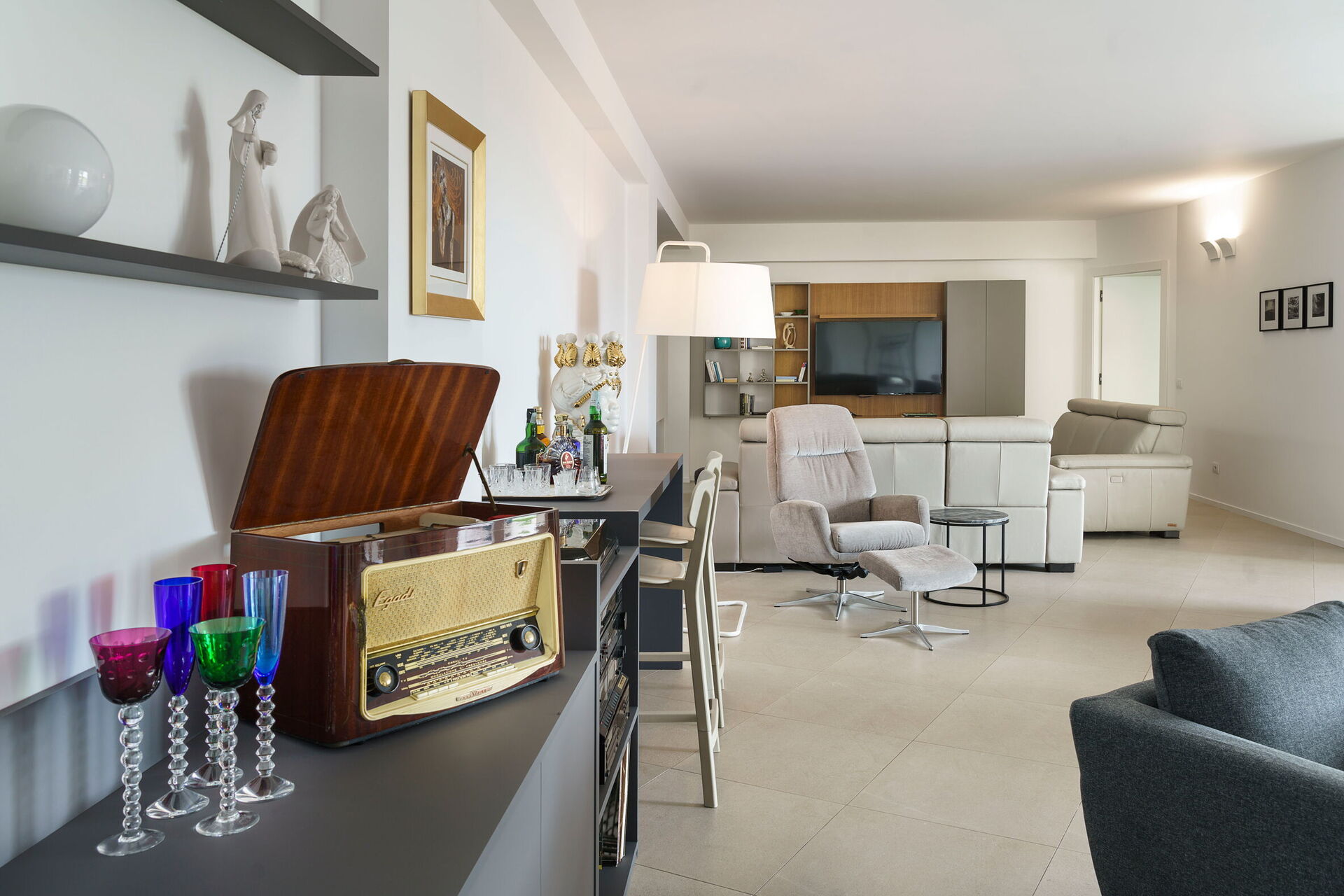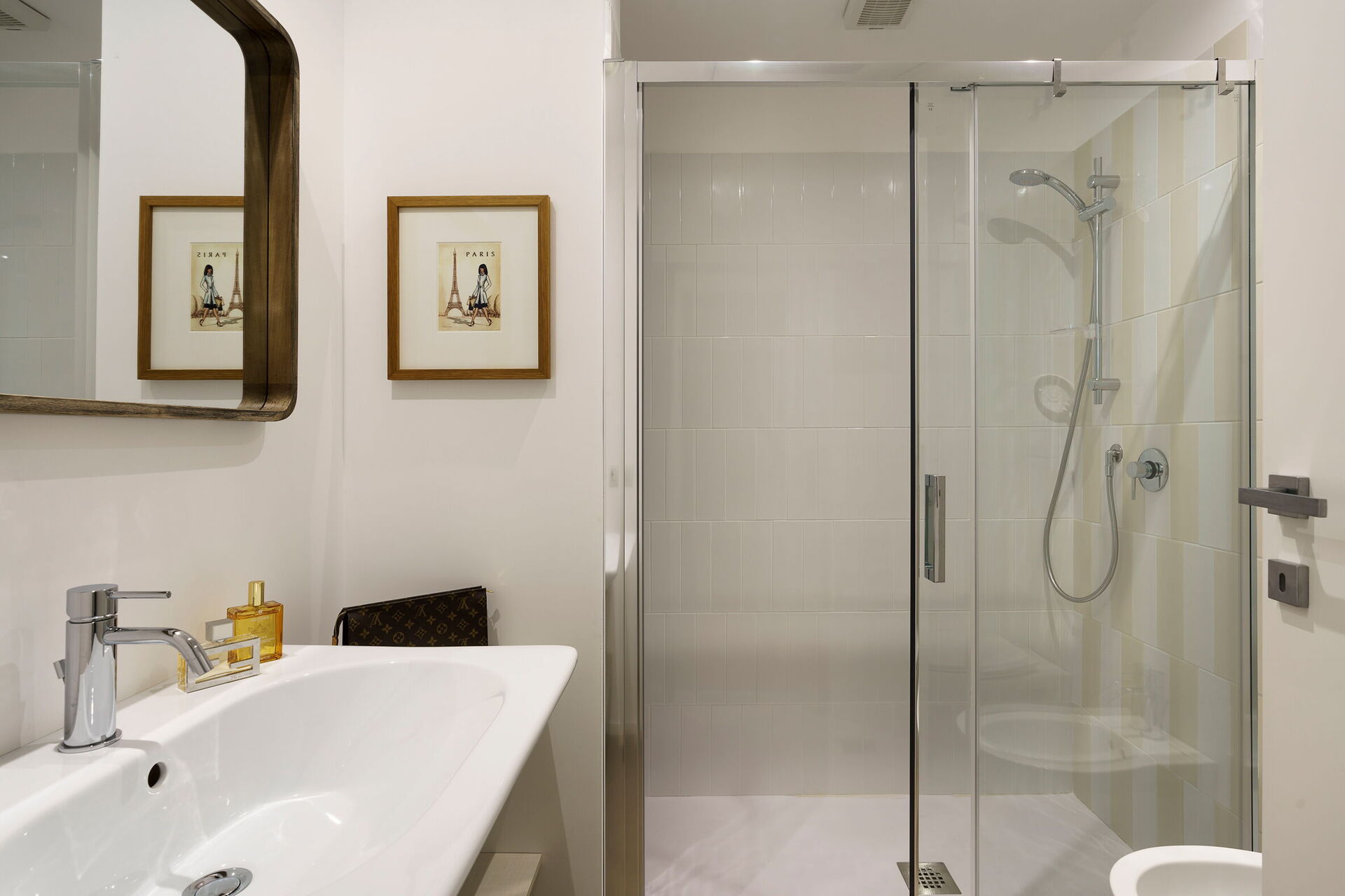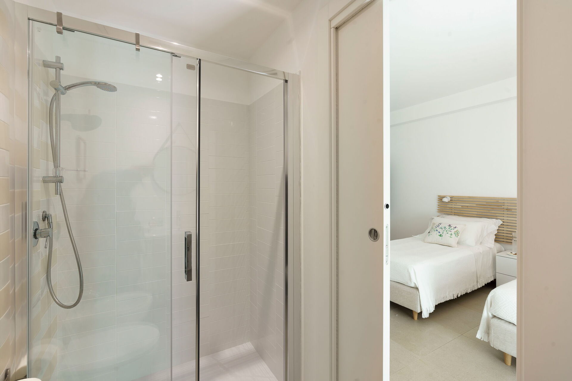 Ground Floor: large living room with fireplace, dining room, kitchen, laundry room, 3 double bedrooms with bathroom with shower, 1 double/twin bedroom with bathroom with shower, wellness area with sauna, Turkish bath, hydromassage tub and emotional shower.