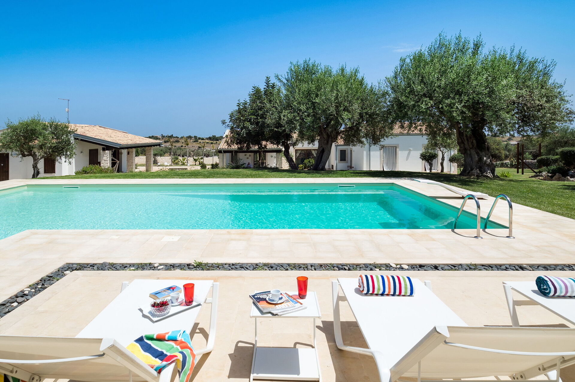 Corte Carrubo is a wonderful country residence with swimming pool (6x12 m, depth 1.10-2.30 m) immersed in an enchanting landscape with olive and carob trees, located near Rosolini in the province of Syracuse, in south-eastern Sicily. The residence is recently built and consists of a main house and an annex, both on the ground floor, and offers a welcoming and comfortable atmosphere. Corte Carrubo's location is ideal for exploring the fascinating baroque towns of the Val di Noto, such as Modica, Ragusa-Ibla, Scicli and Noto, which are renowned for their architecture and cultural heritage. The proximity to the splendid beaches of Pozzallo, the Vendicari reserve and Portopalo di Capo Passero makes this villa an ideal choice for those who wish to enjoy both the historical charm and the natural beauty of the area.
