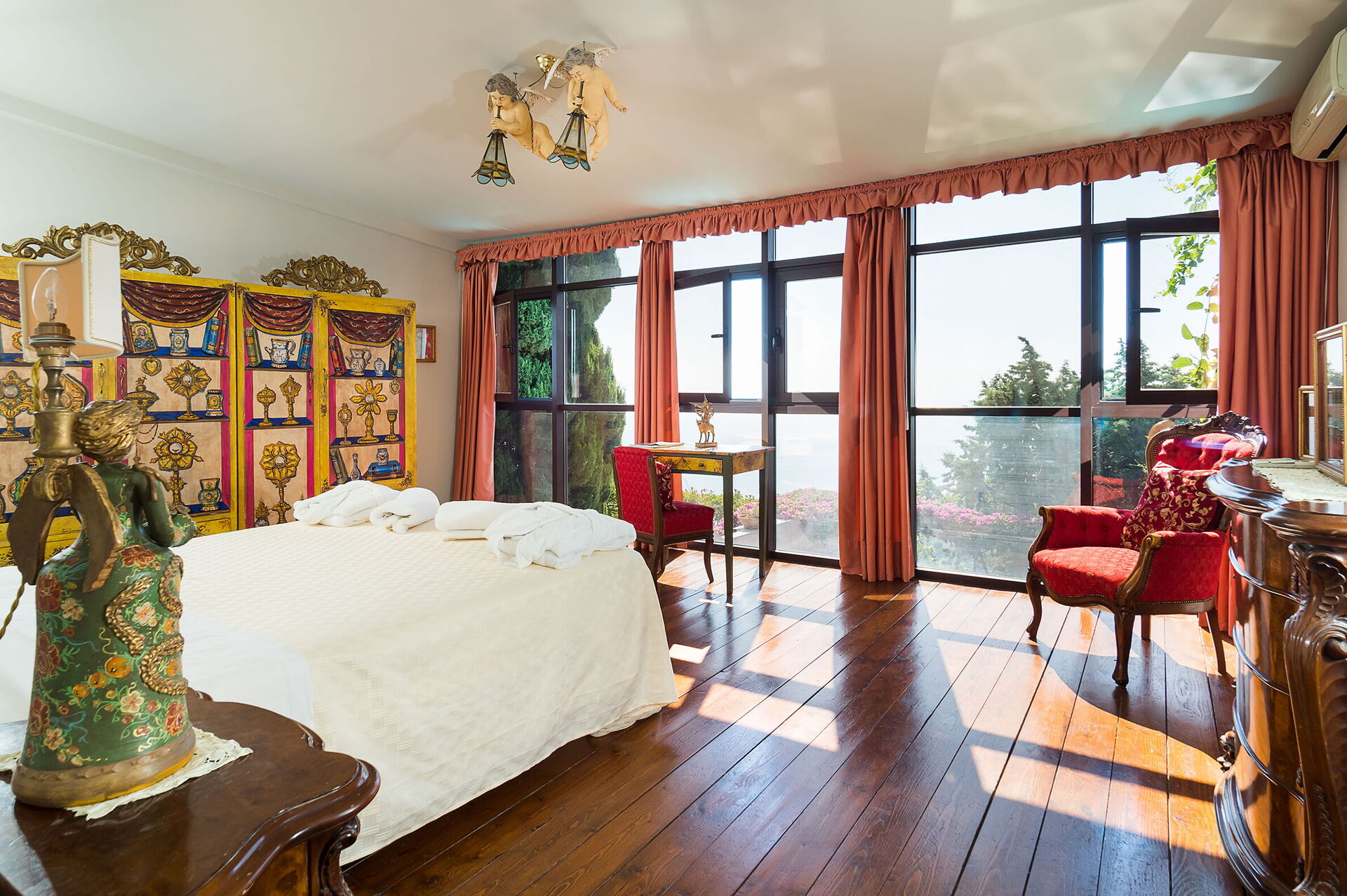 Villa Dioniso in Taormina is composed, on the ground floor, of a large living room, dining room, well equipped kitchen, a bedroom and a bathroom.