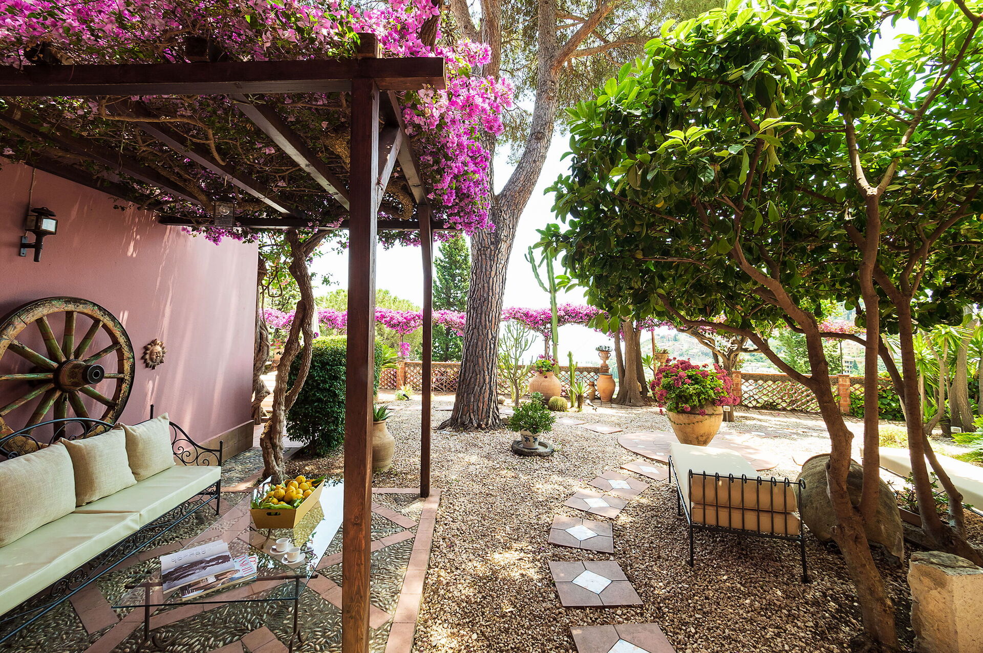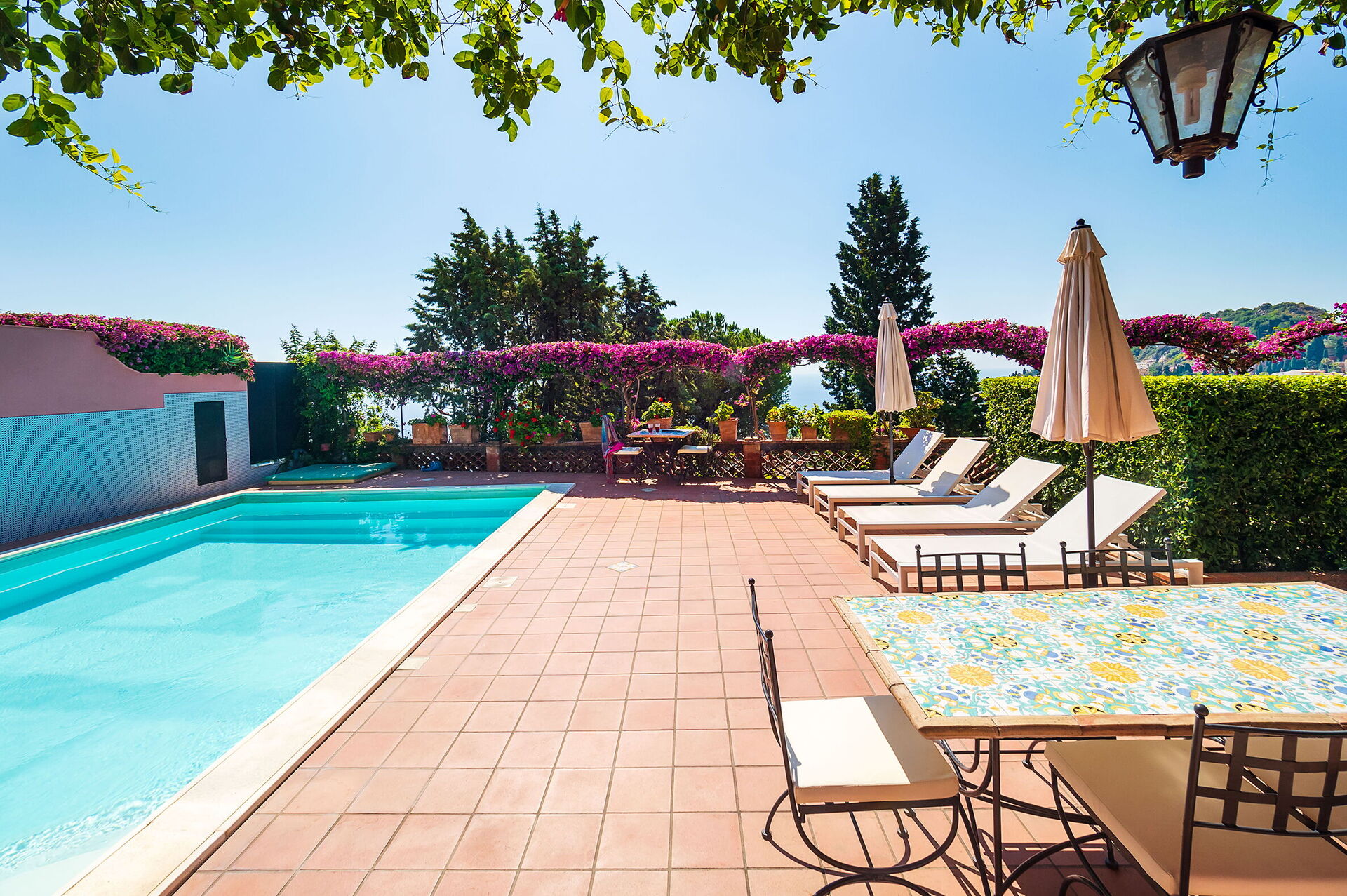 Villa Dioniso is a wonderful Sicilian style villa with swimming pool, near the Teatro Antico of Taormina, close to all services.