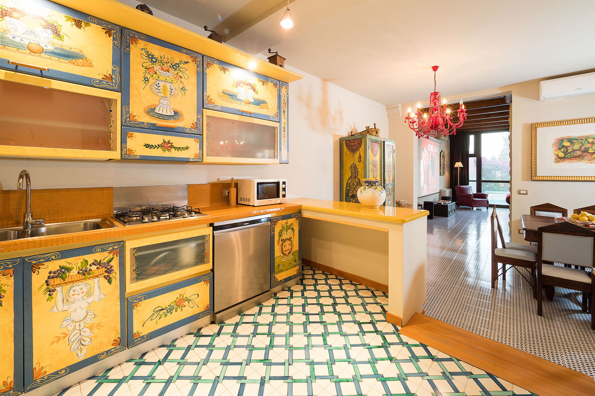 Well Equipped Kitchen, Iron, Oven, Freezer, Fridge, WiFi Internet, Dishwasher, Italian Coffee Machine, Microwave, Stove Top, Toaster, Air Conditioning, Dining Table