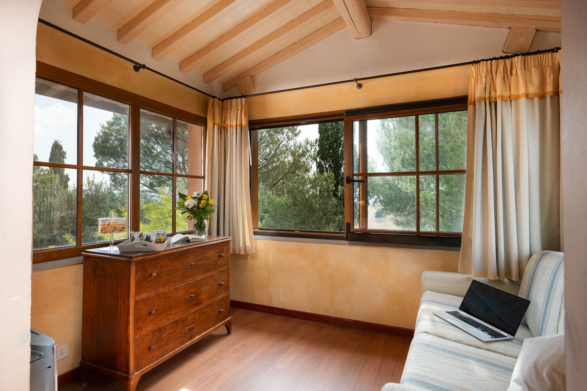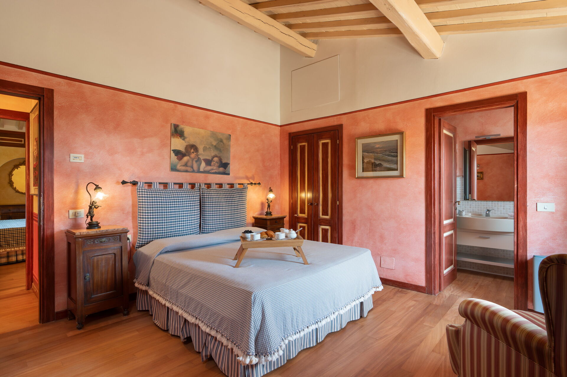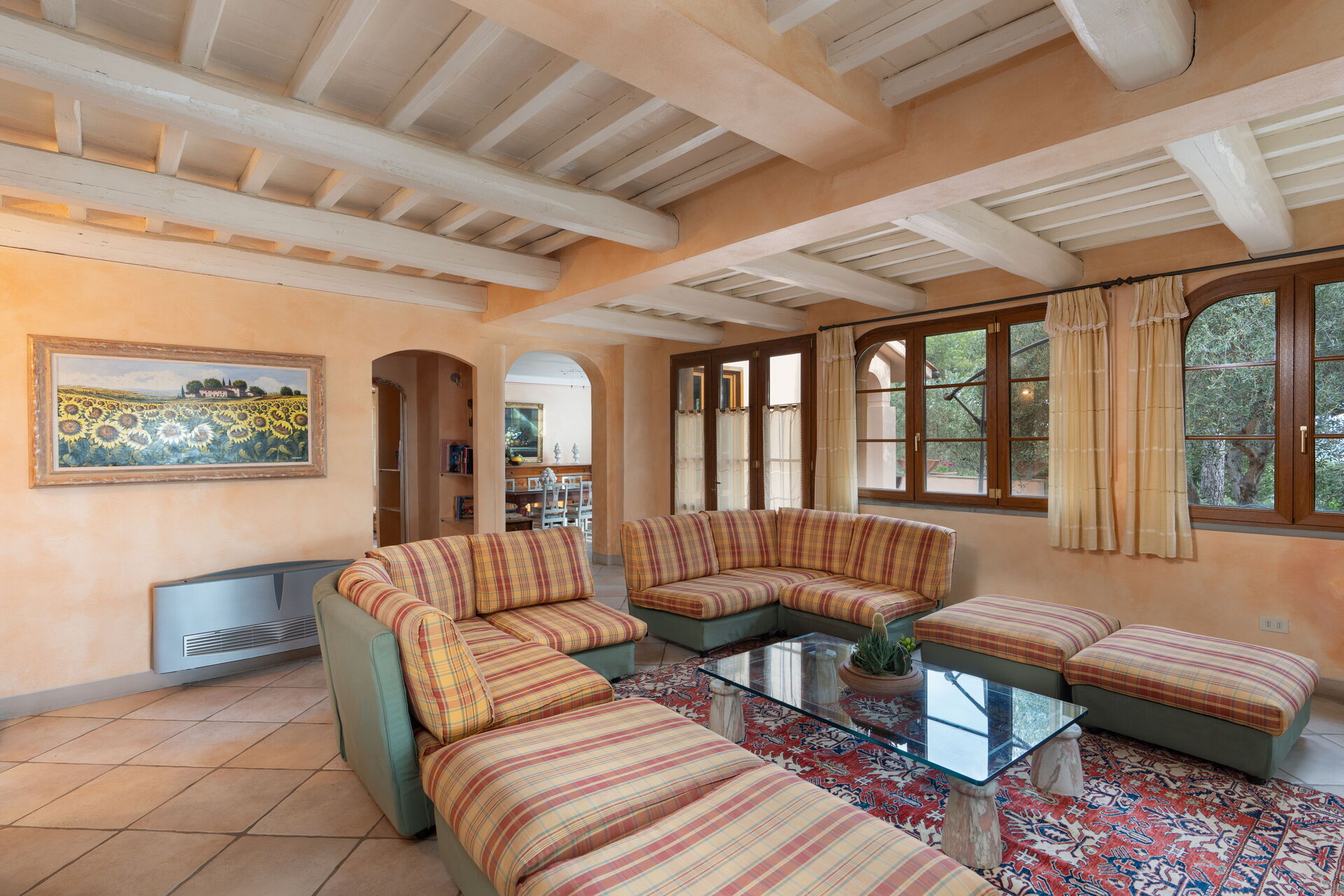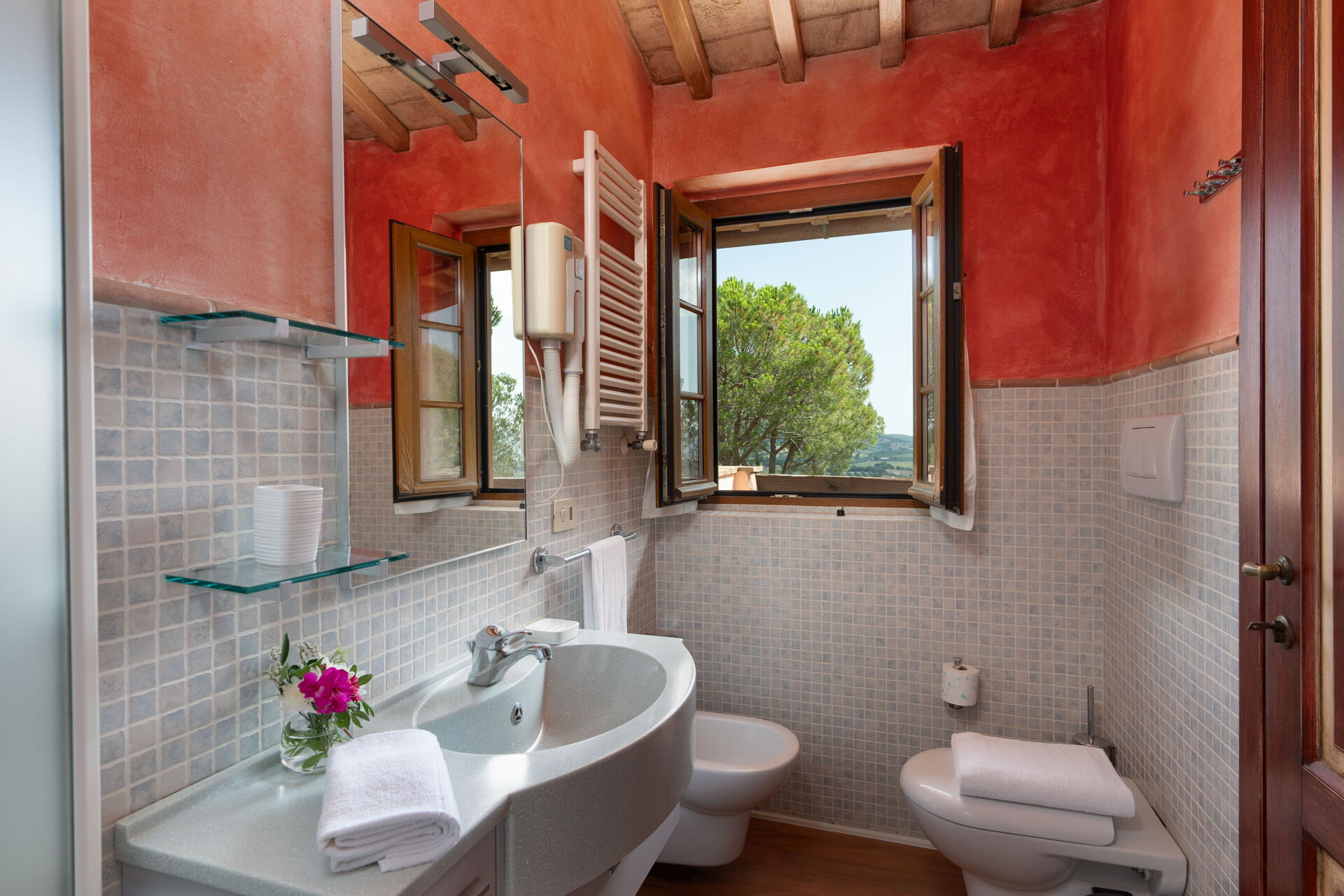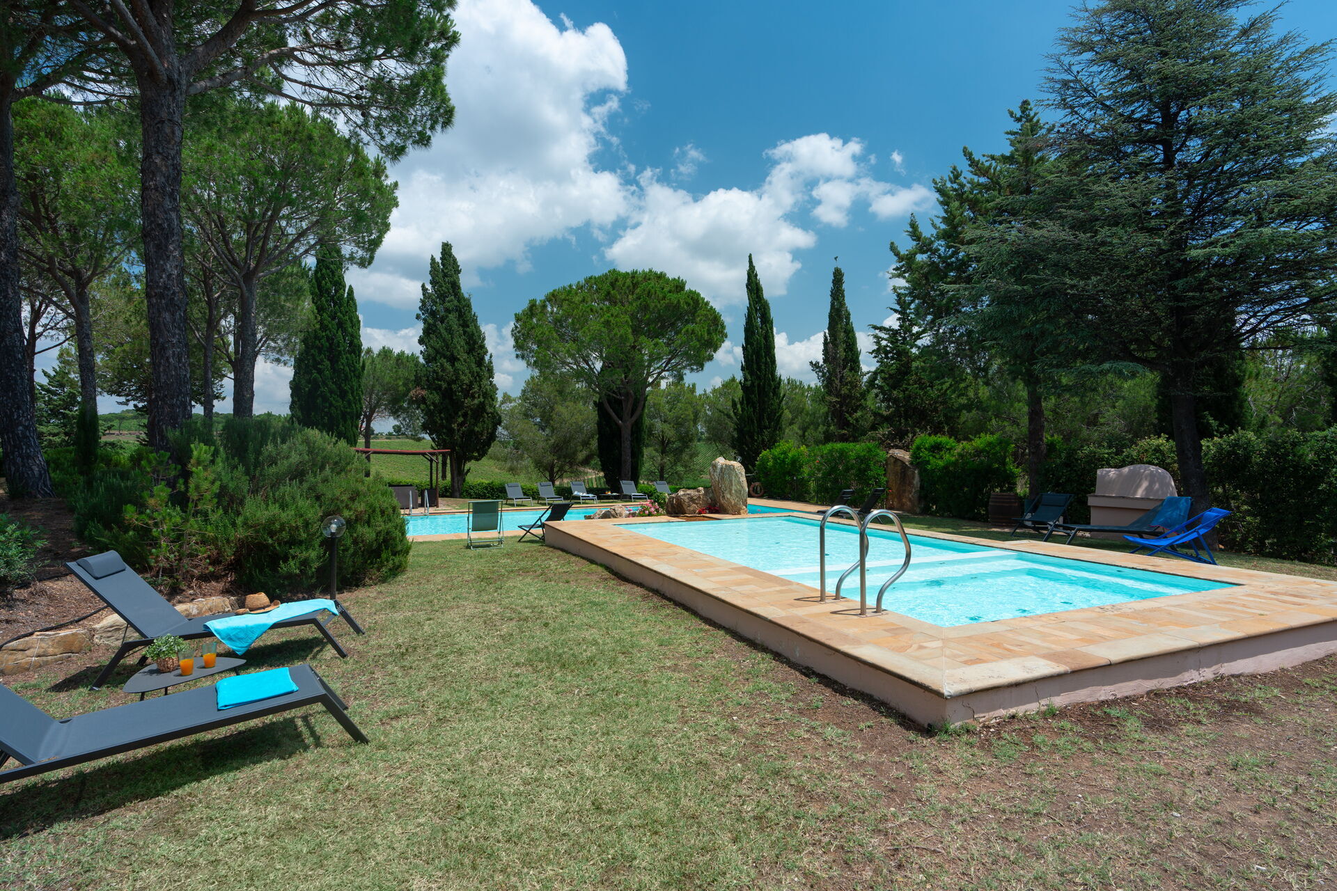 Large independent house surrounded by vineyards and views over the beautiful Tuscan countryside. The perfect location to feel completely private and secluded while still within easy each of the coast, your day-to-day necessities and a wealth of places to visit. This is a very spacious property for 12 people spread over three floors offering six bedrooms each with their own private bathroom, a gym and sauna, a snooker table, free wifi internet and several living areas with comfortable seating. Possibility to have a sofa bed for one or two children in one of the bedrooms (supplement applicable). Externally you will find a large garden with a terrace for al fresco dining, a barbecue and three pools (a children's pool, a jacuzzi pool and a larger pool with waterfall feature). Space for parking within the grounds of the property. Just 16km from Grosseto and the regional park of Uccellina, 22km from the coast and 47km from Argentario, this property is ideal for exploring the wonderful Maremma area.